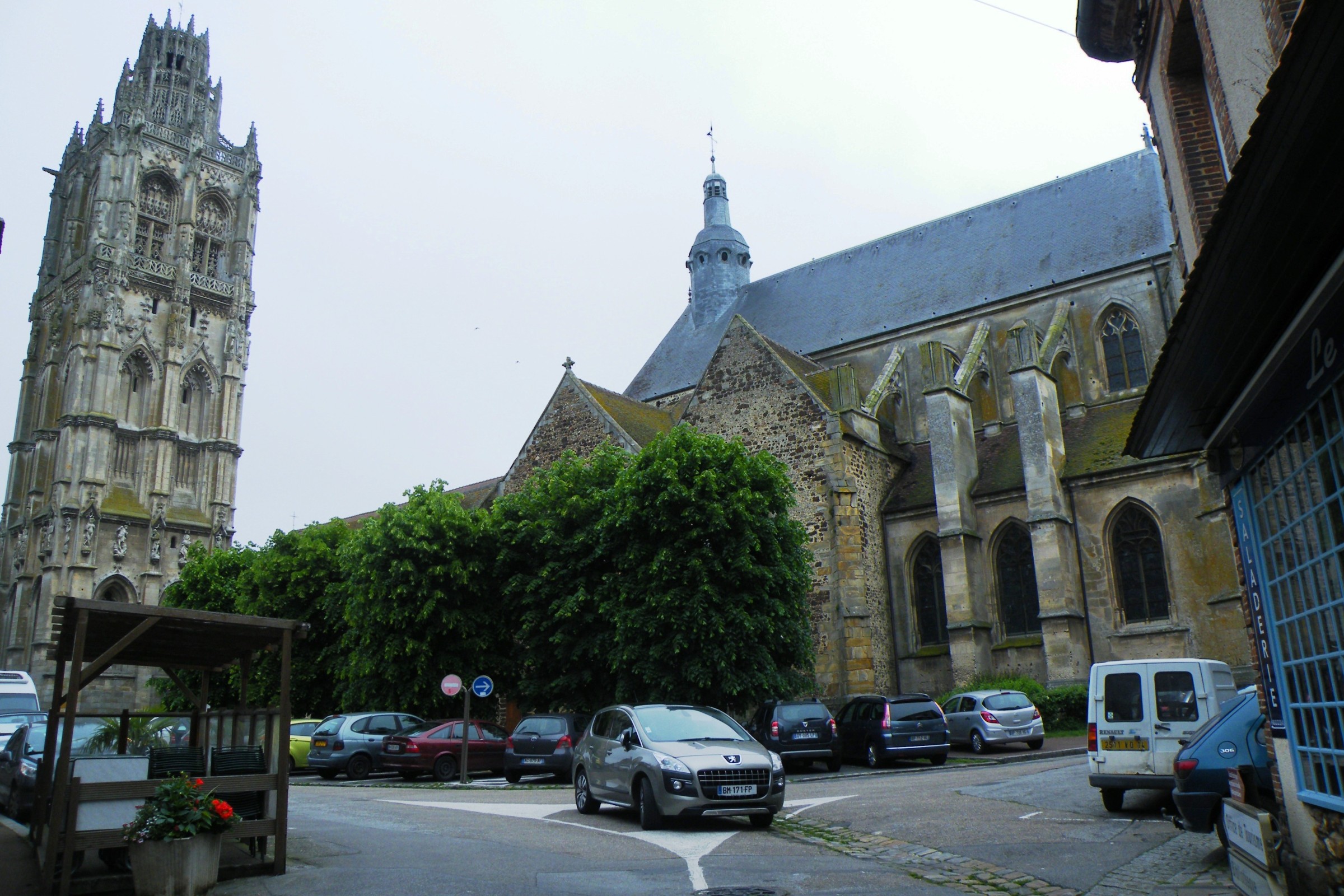 4.6. Ráno popojíždíme z hnízda narkomanů Alenconu o sto kilometrů dál, do města Verneuil sur Avre. Parkujeme hned vedle centra. Je sobota a na náměstí je zrovna trh. Nejsem ženská, abych na něm strávil půlden a nakoupil fůru věcí, o kterých jsem předtím nevěděl, že je nutně potřebuji (viz Sokratův citát). Jediné, co mně zaujalo, byl stánek s mořskými potvorami. To na mně zapůsobilo exoticky. Byl jsem s trhem raz dva hotov, a šel jsem fotit katedrálu La Madeleine. Verneuil sur Avre, bylo založené na začátku 12.století na obranu hranic Normandie. Patří také mezi 100 nejkrásnějších měst Francie. Proto jsem ho vybral pro zastávku na naší trase. I zde je katedrála, pozdně gotická, asi též v anglickém slohu. Ale tahle má aspoň některé klasické lomené oblouky. 56m vysoká věž je podobná té v Alenconu, ale je v horní části nad fiálami bohatě zdobená. Sympatické jsou rovněž staré hrázděné domy. Některé s krásnými zdobenými nadportály. Pár domů s jednoduchým svislým hrázděním mělo mezi trámy zvláštní vzácnou ornamentální výzdobu. Jakoby poskládanou z mikrocihliček, většinou o velikosti přibližně 2 x 20cm. Různě poskládané tvořily řídkou mozaiku. V jednom místě překračujeme malý vodní kanál, zřejmě nesplavný.