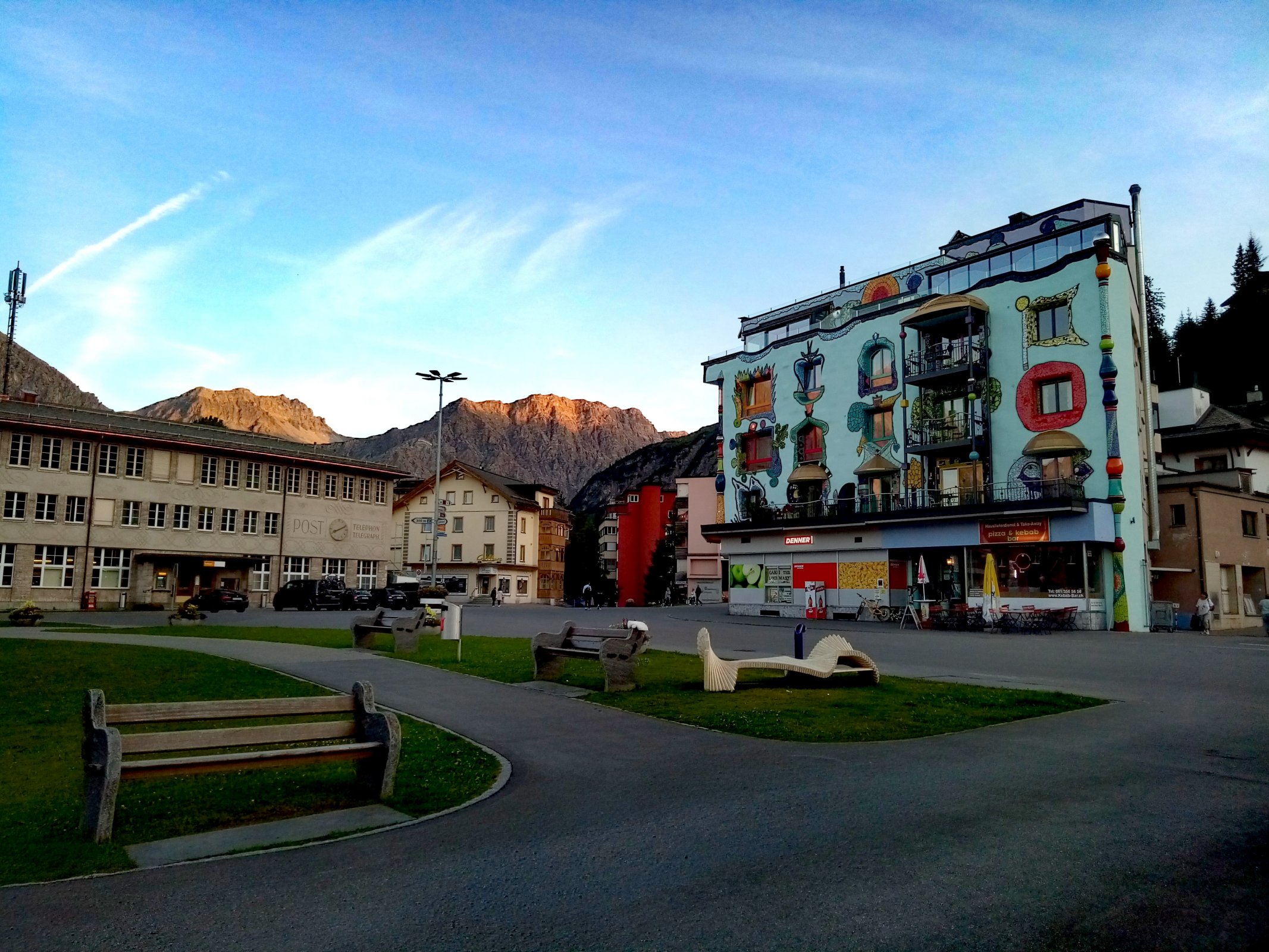 Kolem poledne projíždíme město Chur (598 m.n.m.), kde se kvůli teplotě 24°C nezastavujeme, i když v původním plánu to bylo zahrnuto. Pomalu ukrajujeme z 30 km do cíle, které máme ted´před sebou. Stoupáme úzkou, horskou silničkou, lemovanou příkrým srázem. Po pár kilometrech se mi začínají potit ruce, po dalších pár kilometrech ztrácím barvu i hlas, po dalších pár kilometrech zastavuji a rozdýchávám svůj stav. Proč? Protože si díky neuvěřitelným serpentinám v kombinaci s charakterem vozovky připadám jako Rallye závodník, nestačím točit volantem a to se mojí kinetóze vůbec nelíbí. To, že mi bývá špatně jako spolujezdci, to beru, ale že mi bude zle i jako řidiči, to asi jinde než cestou do Arosy nezažiju.