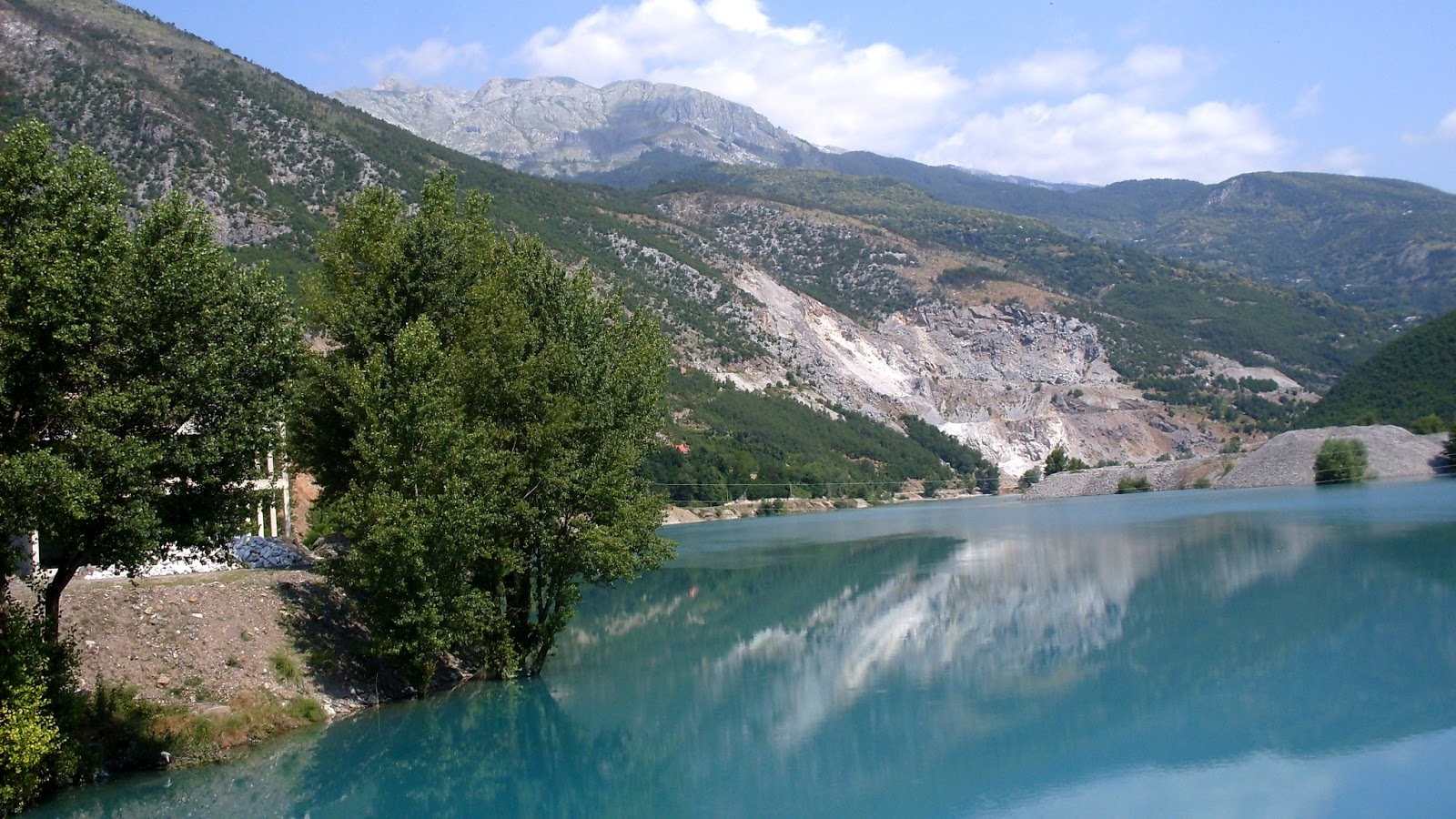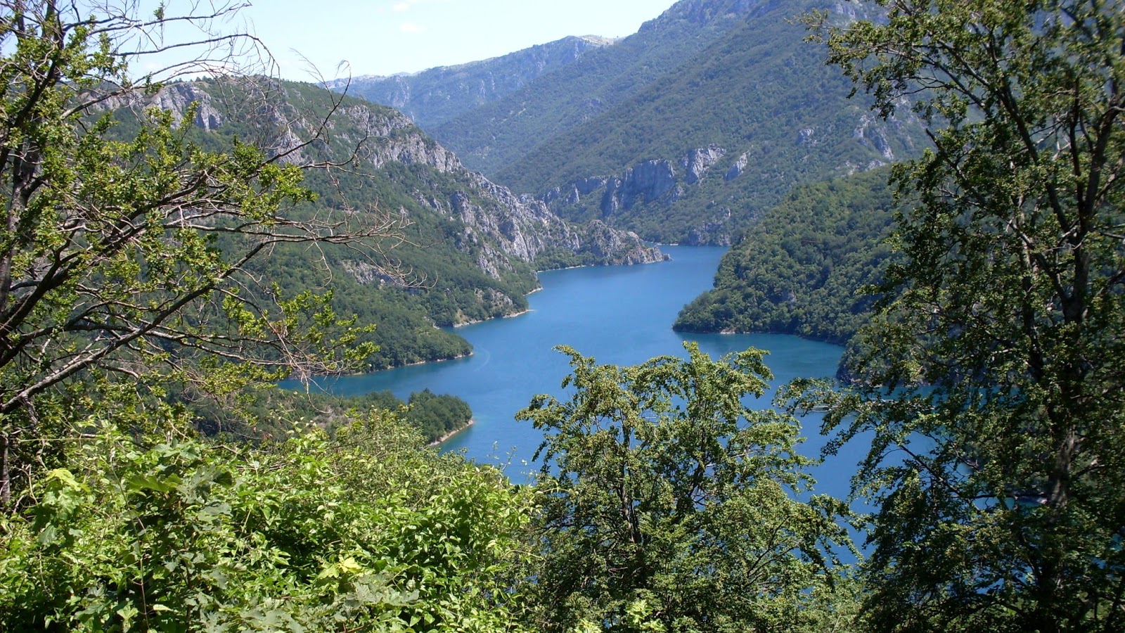 tunelov a trasa je náročná-želá veľa šťastia. Silnica ozaj striedavo klesá a stúpa okolo jazera, prechádzam asi 30 tunelov (od 50-700m) a po vyše 100m vysokej priehradnej hrádzi. Za ňou tunele pokračujú a cesta klesá až takmer k rieke- pokračuje úzkym a vysokým kaňonom, v jednom mieste prechádza na druhú stranu po moste vysoko nad riekou. Prejdenie je ozaj zážitok, stojaci za vynaloženú námahu. V stúpaní sa naraz vynára PRVÝ cykloturista- nerozumel som odkiaľ je, ale ja som oproti nemu "naľahko". Za horským bicykľom má vrchovato naloženú dvojkolesovú káru 60x80cm a ide do Albánska- teda po stejnej trase, ako ja odchádzam. Neviem si predstaviť, že by som mal absolvovať nasledujúce stúpanie s takým nákladom- musí mať bohovskú kondičku.