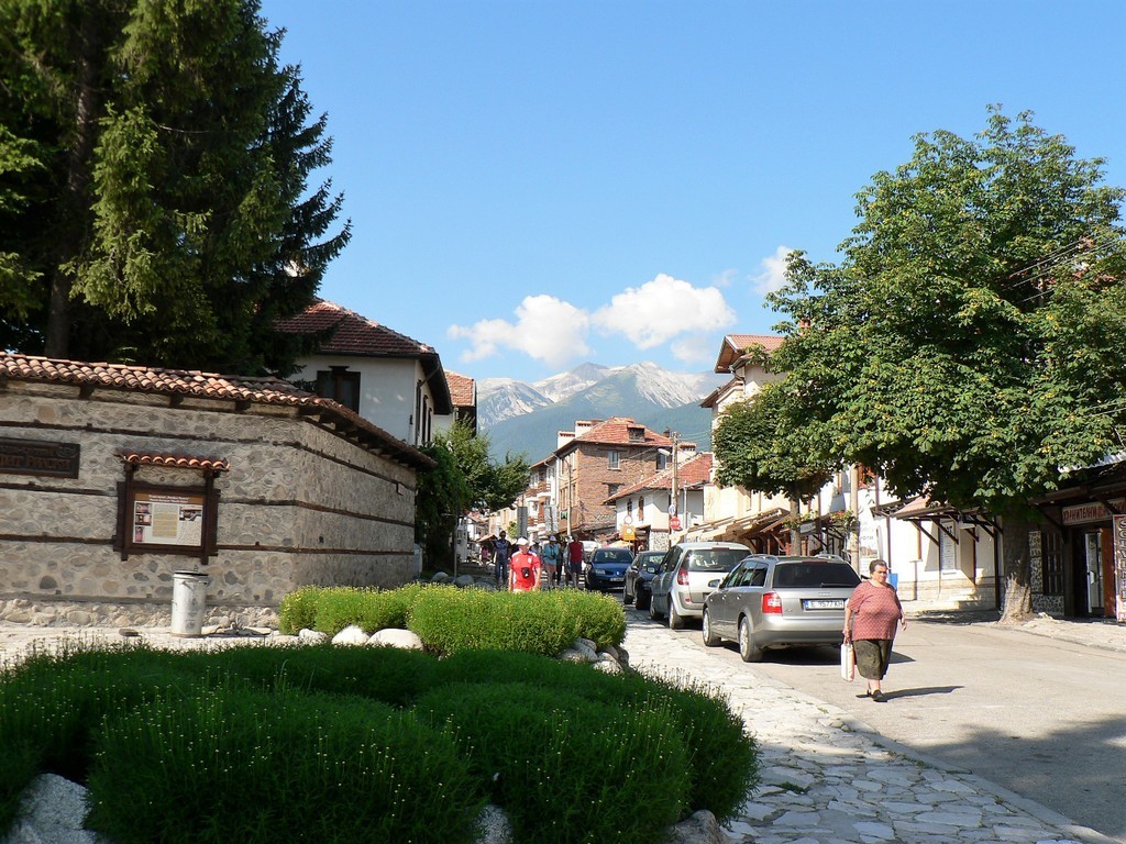 První seznámení s Banskem začalo v hotelu Elegant Lux. Ubytování a služby na vysoké úrovni, ale již před hotelem je prašné parkoviště a okolí zarostlé plevelem. To samé platí o několika desítkách dalších hotelů, které tu rostou jako houby po dešti. Mezi hotely a starým městem je čtvrť, která se dá nazvat vybydlenou. Velká část obchůdků i větších prodejních středisek je uzavřena, jen sem tam se narazí na otevřený obchůdek, směnárnu či nabídku služeb. Blíže staré části města se situace mění a je zde i větší počet lidí. Ke staré části přiléhá pěší zóna a tady je již skutečně rušno. Kavárny, obchody a restaurace jsou většinou plné a hodně lidí využívá místní park. Je zde jakýsi monument, zřejmě se jedná o velikána se vztahem k místu. Zmrzlina se prodává na několika místech a platí se za její váhu.