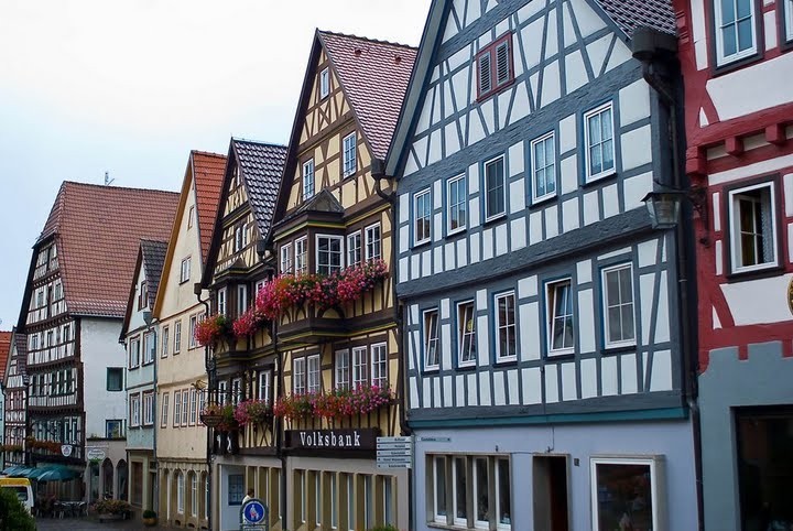 První den naší výpravy jsme pojmenovali dnem dálnic. Po dálničním peklu jménem D1 jsme se ocitli v ráji jménem německá dálniční síť. Kilometry ubíhali a s malou zastávkou na benzínce s dětským hřištěm, kde se náš třináctiměsíční Adámek dostatečně vyskotačil, jsme se v 18:00 ocitli před problémem, kde v Německu přespíme. Lenka začala studovat naší trasu v mapě a rozhodla, že městečko Bad Wimpfen je to pravé. Sjíždíme z dálnice a po osmi kilometrech vjíždíme do okouzlujícího světa hrázděných staveb obklopených hradbami. Nejprve zastavujeme v turistických informacích u historického nádraží, kde si z letáčku vybíráme penzion v centru a jedeme se ubytovat. Pokoj je pěkný, ale bohužel nemají dětskou postýlku. Nedá se nic dělat. Na hledání dalšího penzionu už nemáme čas. Přichází totiž doba krmení. Já jsem v mezičase trošku upravil ležení, aby se nám Adam v noci neskutálel, a po uspokojení našeho syna se jdeme společně najíst a prozkoumat městečko. Procházíme úzké uličky s barevnými hrázděnými domy až na náměstí s kostelem a vysokou věží. Celé město se nachází na vyvýšeném břehu nad řekou Neckar, na kterou jsou z městského opevnění pěkné výhledy. Škoda, že celkový pohled na krajinu ruší nedaleká továrna. Z hradeb se vracíme zpět do uliček a kousek od spodní brány neodoláme jedné z restaurací a v zahradním dvorku povečeříme místní specialitu. Šlo o tašky plněné směsí masa a koření podávající se s různou omáčkou, nebo přílohou. Lenka zvolila špenát se smetanou a já žampiony se slaninou. Moc jsme si pochutnali. Škoda, že místní pivo, které jsme podle barvy pojmenovali pomo-cimo (žlutá točená limonáda) podobně i chutnalo. Po dobu, co jsme večeřeli, náš klouček spokojeně usnul a můžeme ho v klidu transportovat do pokoje našeho penzionu. Jsme rádi, že vše proběhlo takhle rychle. Máme zítra před sebou ještě kus cesty.
