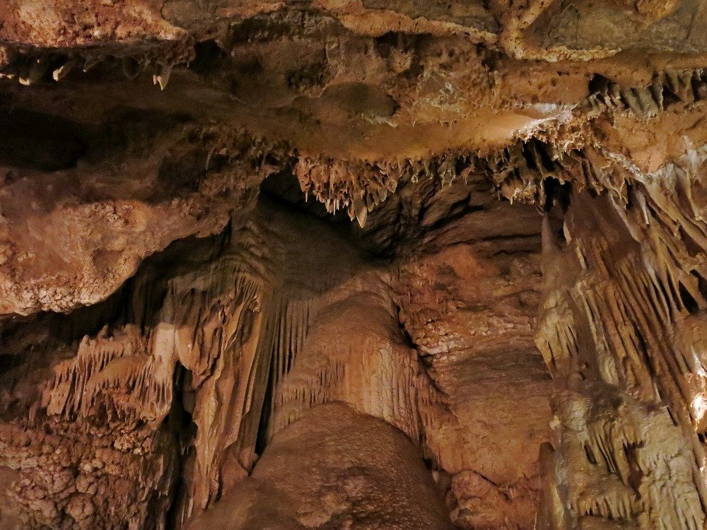 Konec naší týdenní návštěvy Berounska se neúprosně blížil a někteří členové výpravy se stále rezolutněji hlásili o slíbenou návštěvu podzemí. Naštěstí pro ně se marně opakované výkřiky našich meteorologů o přicházejícím období dešťů na chvíli skutečně vyplnily, obloha zčernala a z nebes padalo vláhy v množství větším než malém. A tak jsme se v pátek 25. června vydali navštívit Koněpruské jeskyně. Otevírají zde již v 8,00 hod. a my přijeli právě včas – všechny školní výpravy už měly po prohlídce nebo ji právě absolvovaly. Vstupné 170 Kč sice u nás patří k těm nejvyšším, ale je do něj automaticky zahrnut poplatek za fotografování, což mě docela potěšilo. Překvapil nás naopak požadavek, abychom u sebe měli potvrzení o očkování, testování apod. Někteří se museli vrátit k autu, já mám, naštěstí, potvrzení o nedávno prodělaném covidu v mobilu (v oné potřebné chvíli, pochopitelně, vypnutém).