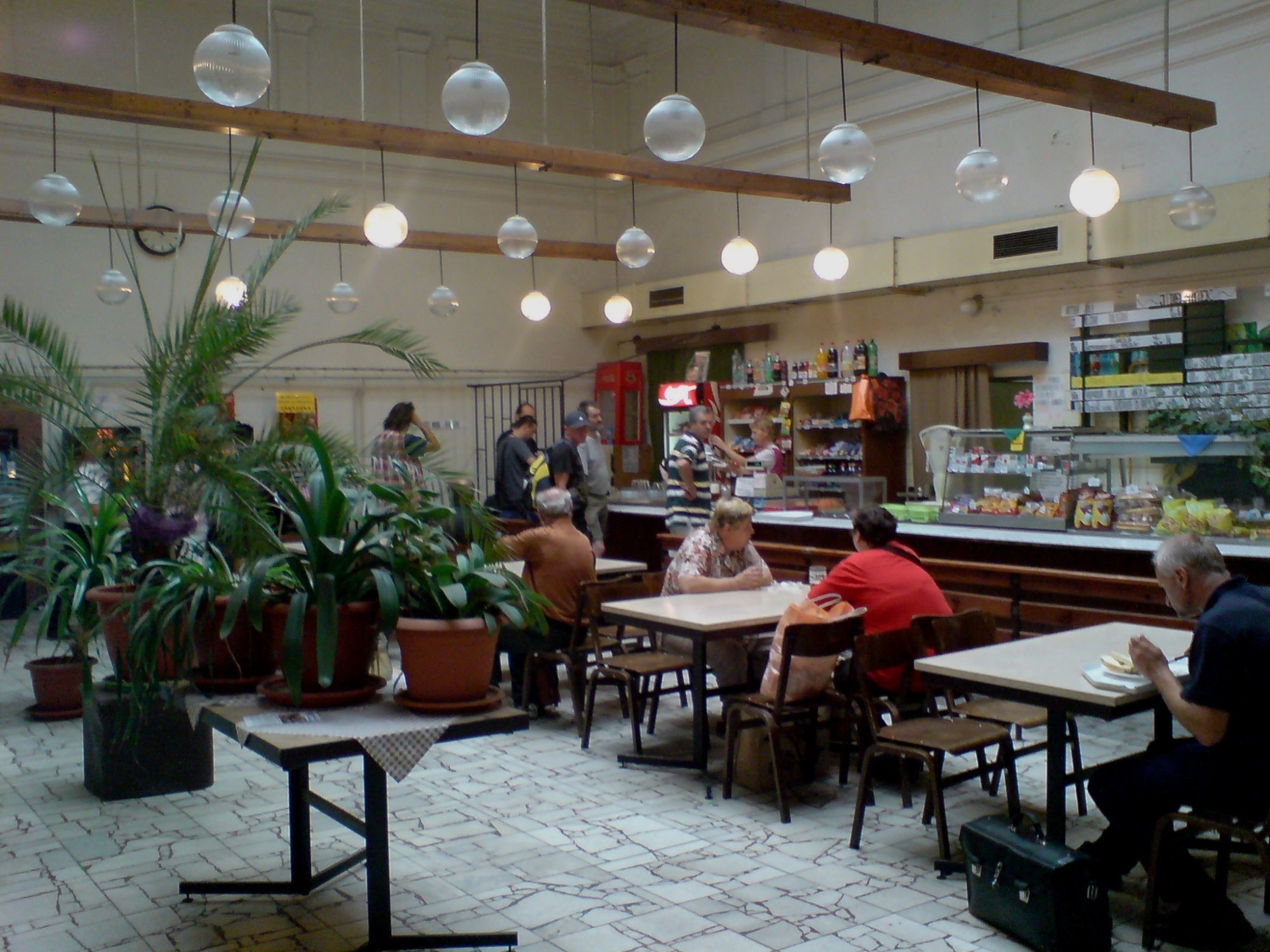 Znalý poměrů vedu tedy výpravu do secesní budovy na přerovském nádraží. Pamatuju tam různé pochlastávající Trosky, bezdomovce, kteří tam hledali útočiště, i deliriozní opilce, kteří se pod vysokým stropem zřejmě propíjeli dnem po dni až k tomu poslednímu. Taková individua jsme tam tentokrát ale nezastihli, dokonce i interiér se mi zdál vylepšený (že by ty květináče?), jenomže v té obrovské hale by asi nepomohlo k útulnosti vůbec nic. Kromě bedny dynamitu. Samotný průšvih není ale ani tak vizáž, myslím si, že jsme pořád ještě zvyklí na ledacos, peklo nastává až v případě, že seberete odvahu a jdete si něco pořídit k pultu. Servírka (nebo uklízečka?) v zástěře typu Žena za pultem, panáky nejsprostší kořalky v umělohmotných kelímcích, přelepených staniolem, špína, kam oko dohlédne a způsob točení piva zdá se mi poněkud nešťastným. Zvláště, když ho servírka (nebo jak se tam ta funkce jmenuje) vylije po celém pultu, vymáchá si v něm ruce a podá vám prazvláštní bílou směs (takhle asi vypadá pravý máslový ležák J), ze které se teprve časem u stolu začne klubat pivo. Ale nedejte si ho…