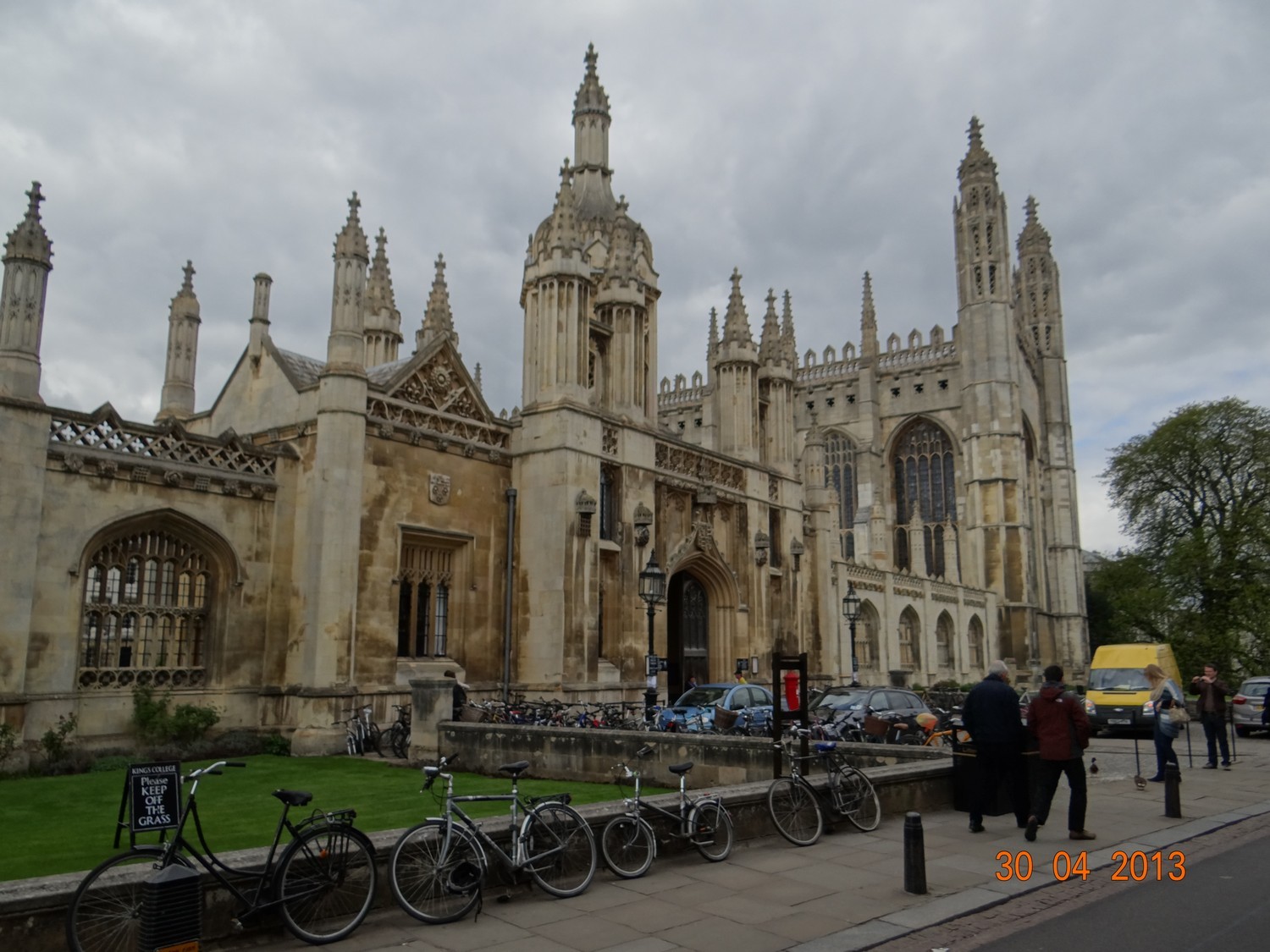 V úterý 30. dubna v 9:58h vlakem z London Liverpool station. V Anglii je běžné, že z jednoho nástupiště odjedou během 10 minut dva vlaky. Deset minut do odjezdu. V klidu jsem si sedl do vlaku na 2. nástupišti. Rozdělal jsem si bagetu a k tomu kafe. Vlak odjíždí. Nepřišlo mi divné, že každou stanici hlásí " train for London Stansted airport". Až hlášení " London Stansted airport terminated station" mě vyvedlo z klidu. Místo v Cambridge jsem na letišti Stansted. Jel jsem špatným vlakem. Naštěstí i odtud jezdí vlak do Cambridge. Další za 40 minut. Dokonce mi průvodčí uznal i můj původní lístek. Hodina zpoždění oproti původnímu plánu. Je 12h. V Cambridge je to z nádraží do centra půl hodiny pěšky. Po Station road vpravo na Hills road a následně Regent street až do centra. Tady se mi až na poněkolikáté podařilo najít turistické informace. Doporučili mi prohlídku universitní čtvrti a centra města, které pochází ze 17. století. Koupil jsem si mapku za 50 pencí. Nejdřív Kings College. Nejdražší a nejprestižnější universita ve městě. Dovnitř mohou jen studenti. Jako všude. Na první pohled zaujme velké množství zaparkovaných kol a plno cyklistů v ulicích. Tady každý student má svoje kolo. Pokračuji dál, jdu okolo: Catharine´s College, Corpus Christi College, Queens College, Clare College. Přes park za Kings College. Kromě zeleně je tu i vodní kanál s můstky, po kterém jezdí lodičky. Míjím St. John´s College, Westminster College a to už se dostávám zpátky do centra. Je čas jít na vlak. V 15:04h odjezd do Londýna.