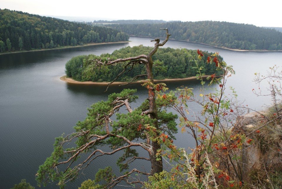Potom jsme už pokračovali na Seč. V zámku sídlí státní správa (jak taky jinak, že ano) a my proto pokračovali přímo k přehradě. Po přejezdu hráze zamkneme kola, šplháme do poměrně prudkého svahu a pátráme po zřícenině hradu Oheb. Když ji objevíme, spadne nám brada. Jedinečné výhledy na přehradu připomínají spíše pobyt v Chorvatsku a i zřícenina samotná stojí za to. Nad námi už sice silně hřmí a nad Tatrú sa blýska, ale my vytrváme. A, jak jsem již zmínil v úvodu, následně skoro stihneme i dojezd do obce suchou nohou. Cestou ještě fotím romantický (takový jsem prostě já) západ slunce poblíž zříceniny hradu Lichnice.