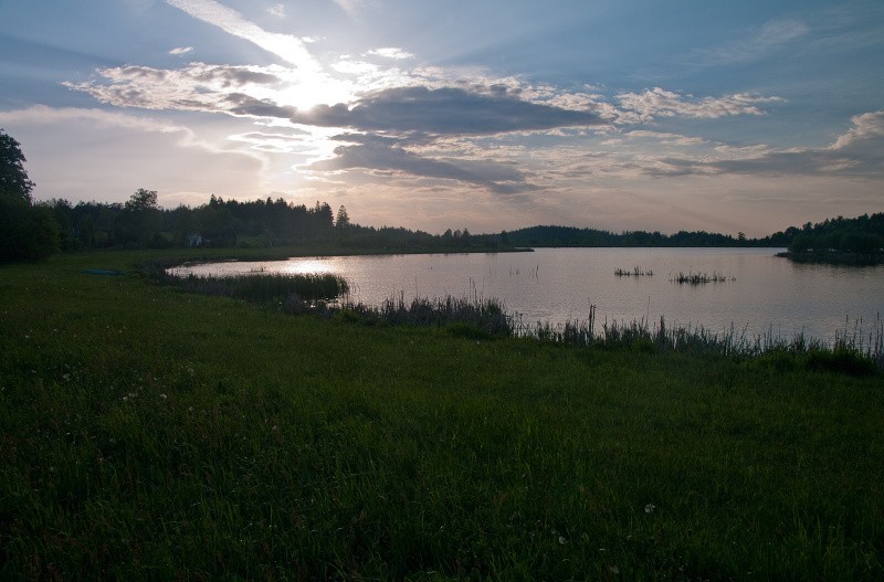 Cestu přes Červený Hrádek do Dačic už celkem znám, postupně sjíždíme vlastně do Podyjí (Dačicemi protéká Moravská Dyje). Na náměstí vaří jakási kapela, podle všeho tu vrcholí předvolební boj. V hospodě U Malínků dáváme Malvaze a pokouším se o spojení. Už jsem věděl, že skupina A je na místě, ale kvůli dešti zatím nikam nejeli. Teď se dovídám, že ještě nikde nejsou. My tedy pokračujeme dál, projedeme Zámeckým parkem, kolem motelu, kde jsem loni byl na zájezdu a zkratkou přes Toužín na Český Rudolec. Tady jsem měl původně domluven sraz se skupinou A. Tak se tedy už vypravili (někteří), ale poněkud ztratili směr, nacházejí se někde pod Landštejnem. Upřesňujeme tedy směr a místo setkání vychází Rožnov. Nesmím opomenout zmínku o zámku tzv. Malé Hluboké v Rudolci, zdá se mi podle krytiny na cimbuří a lešení v okně, že se snad začíná trošku opravovat. Za Matějovcem pomalu stoupáme na Vysoký kámen /v České Kanadě je jich víc, tento má asi 725m/ každopádně je to nejvyšší bod této etapy. Kousek před vrcholem se na cestě objevuje cyklista, vypadá úplně jako Mirek a z blízka to je pravda. Dívky nás čekají za kopečkem, tak následuje nezbytné přivítání i s panáčkem. Před Klenovou potkáváme Marka, který se rozhodl taky vyrazit na Malou Hlubokou. No snad to stihne. A kromě Marka i stádo bizonů, které pod Rožnovem chovají. Do Nové Bystřice dorážíme po šesté hodině, Mirka tu asi byla (nebo dostala doporučení), tak hledáme hospodu Na Bojišti, kde lehce večeříme. Celkem se zdá, že podnik je to dobrý, což další dny potvrzují. Do Smrčné to je něco přes kilometr, sice s malým kopečkem, ale ještě před soumrakem jsme doma, jako většina ostatních, až na Marka, který se vrací později. Penzionek je to pěkný, velká společenská místnost s krbovými kamny, vlastní pípa, večírek asi nebude tak špatný…