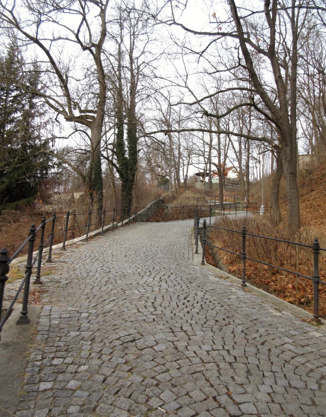 Včera večer jsme si nádvoří prošli, dnes ho míjíme. V hradním příkopu mají být medvědi, ale ani ti nás nelákají. Určitě v té zimě budou někde zalezlí, pokud už dávno nespí.