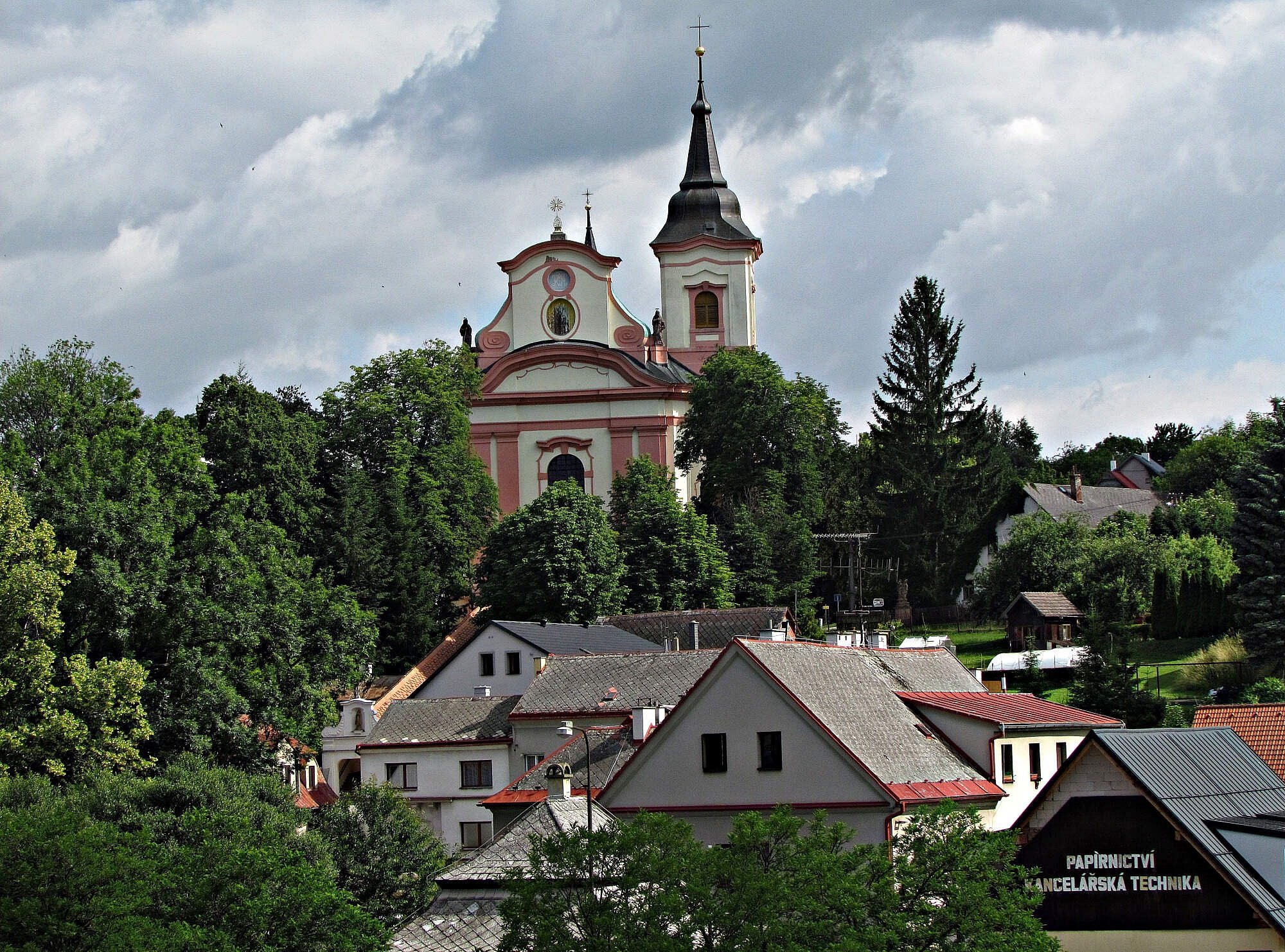 výhled k poutnímu chrámu Navštívení PM a bývalému klášteru