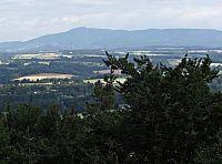 Za dobrého počasí prý odtud bývají vidět i Krkonoše, ale já při dvou předchozích návštěvách za slunných dní, ba ani při této mé zatím poslední pod podmračenou oblohou takové štěstí neměl...