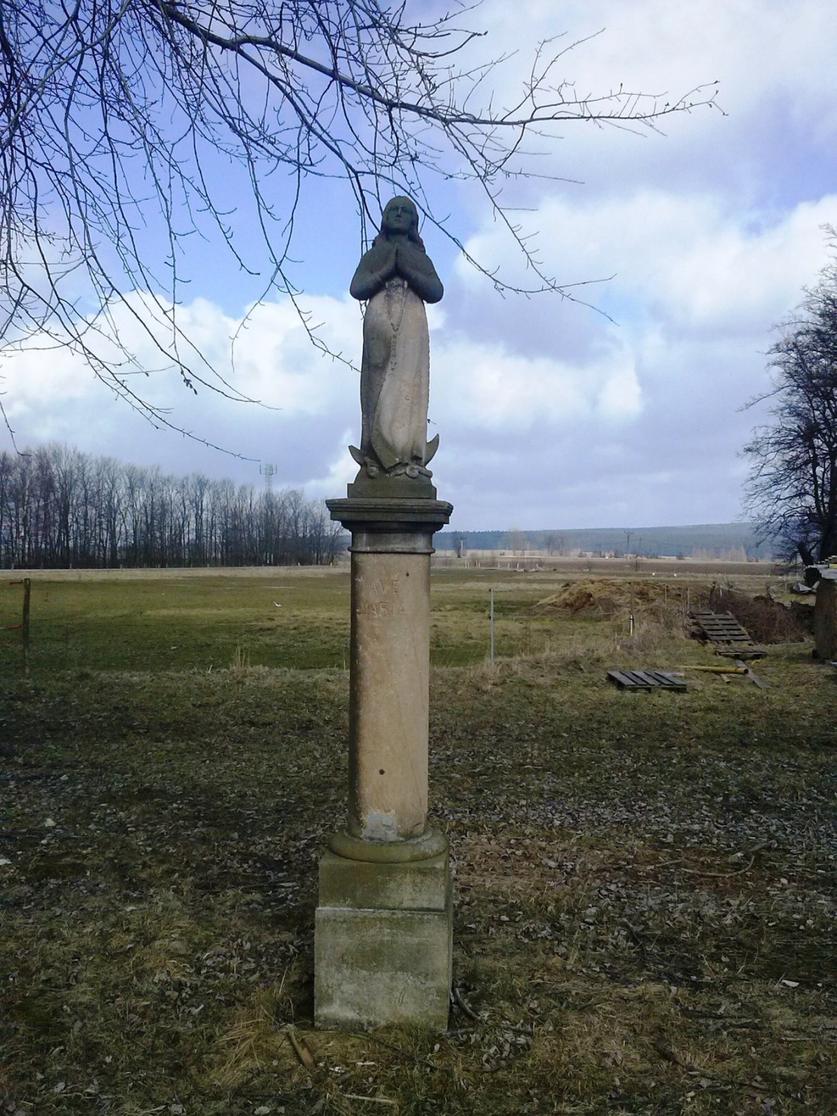 Mariánský sloup je z pískovce od neznámého autora z České Třebové a pochází z r. 1921. Téhož roku byl vysvěcen. Nese nápis „Ave Maria“ a na podstavci jsou ještě další dost nečitelná slova v němčině. Sochu věnovali bratři Bierové jako poděkování, že se všichni tři vrátili z 1. světové války.