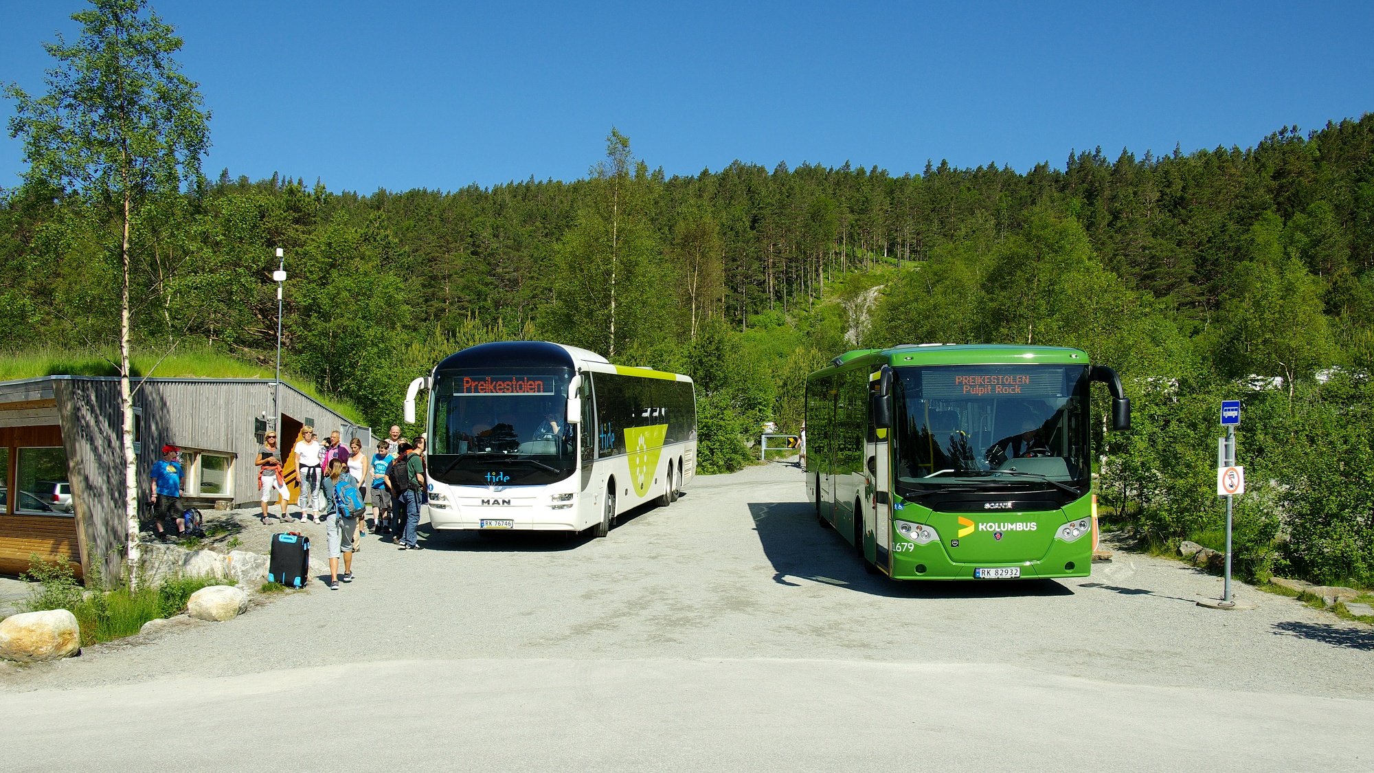 K Preikestolenu jsme vyrazili ze Stavangeru. Náš výlet byl pečlivě naplánován na den, kdy předpověď slibovala zcela vymetenou oblohu. První část cesty jsme překonali trajektem do městečka Tau. Protože jsme byli bez auta, využili jsme nabídku jedné z mnoha cestovních agentur, které zajišťují dopravu autobusem z Tau k parkovišti, u kterého začíná cesta nahoru. Z parkoviště jsme celí natěšení vyrazili nahoru. Informační cedule slibovaly dvouhodinový výšlap do kopce dlouhý 3 800 metrů s celkovým převýšením 326 metrů.