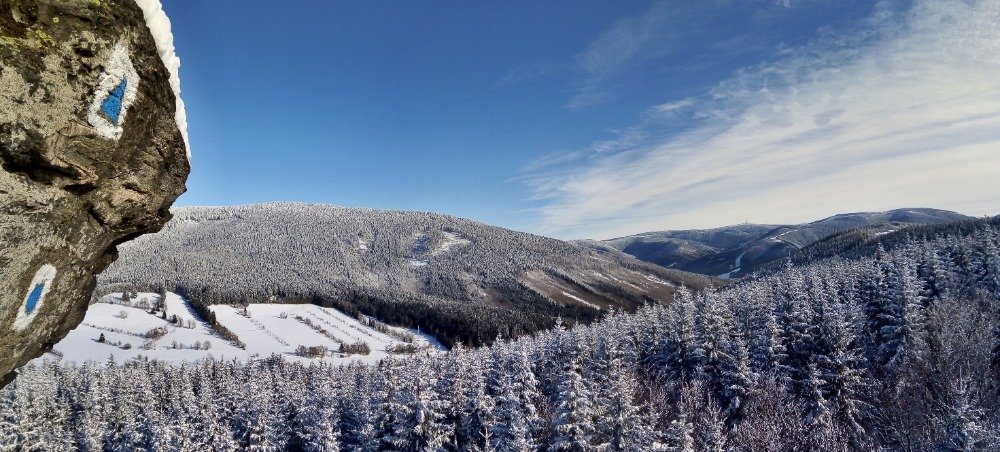 Zimní krajina má své nezpochybnitelné kouzlo a i ty výhledy většinou bývají tak nějak kvalitnější, protože bezoparové. Dokonce i notoricky známá místa jsou najednou trošku jiná a svým způsobem půvabnější. Pro ty, kteří pravidelně brázdí naše hory na prkýnkách rozličných šířek i délek, je to víceméně samozřejmé, ale pro nás ostatní (někteří už na lyže ze zdravotních důvodů prostě nemohou, někteří ani nechtějí a někdo zůstává ortodoxním alpským sjezdařem) se jedná vždy o nevšední zážitek.