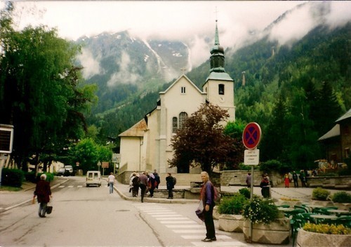 Vyrazili jsme se zájezdovým autobusem mezi jinými výlety i „zdolat“ Mont Blanc! Samozřejmě že ne pěší túrou na něj ale lanovkou,abychom se podívali jak je všude okolo a poznali zdejší kraj z vrcholu nejvyššího.Ale bohužel se nám to nepodařilo,byla děsná mlha,lanovka „nepremávala“ a tak jsme čekali a čekali na mlhu,kdy se zvedne a my budeme moci jet.V mezičasu jsme si prohlíželi krámky,kterých tu bylo spousta i sochy prvních průkopníků zdolávání Mont Blancu.A studovali trochu zdejší historii….čekali jsme 4 hodiny a doufali,že se snad dočkáme,ale nedočkali…..