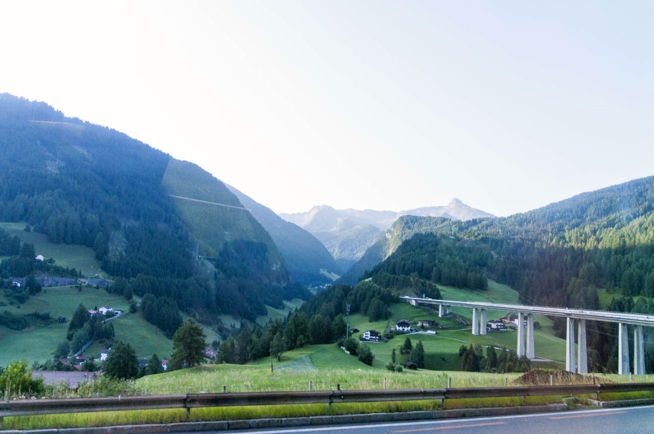 Oba řidiči jsou v nakládce kol vcelku sehraní, takže předpokládáný odjezd v 19 hodin se příliš nemění. Autobus je zpola obsazen výletníky z Jeseníku, ještě nějací lidé nasednou v Brně (po zastávce na Rohlence), trasa na Mikulov je vcelku tradiční, dál k Vídni a na západ Rakouska, přejezd přes Německo k Innsbrucku absolvujeme za nočního klimbání, u Tyrolské metropole jsem již za svítání. Následuje výjezd do Brennerského průsmyku a pak už je tedy Itálie, ačkoliv Jižní Tyrolsko ještě není tak zcela italské. Brixen čili Bressanone zní našim uším značně povědomě (když tu trávil vyhnanství Karel Havlíček), i Bolzano, tedy hlavní město jižních Tyrol má k našim zemím určitý vztah, vždyť jsme kdysi byli součástí velkého mocnářství. Vlastně až další oblast Trentino je ta pravá Itálie. Před krajským městem, tedy Trentem odbočujeme z dálnice směrem k městu Cles, tam začíná ono údolí slunce (Val di Sole), které se na týden stane naším domovem.