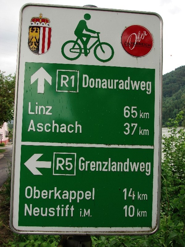 V Aschachu děláme první nákup a zdá se, že v obchoďácích to pro nás není nedostupné. Něco je i levnější než u nás. Po mostě přejíždíme zpět na severní stranu a jedem po ní až do Lince. Trasa vede nejdřív přes vesnice kousek od řeky a pak najíždí na val přímo u vody a drží se ho až před Linec. Tam se mění v cyklostezku klikatící se kolem kolejí a silnice.