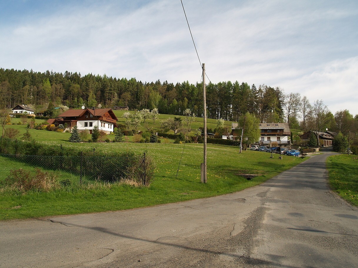 Na obrázku jsou Horní Polánky kousek za Nýrskem. Když se člověk porozhlédne, je to krásný kout šumavského podhůří a nebude to žádná novinka pro spoustu lidí. Značení Cyklotrasy překrývá penzion, kde bylo určitě plno, zrovna tak jako v dalším ubytovacím zařízení, které jsem míjel hned po nasednutí na kolo.