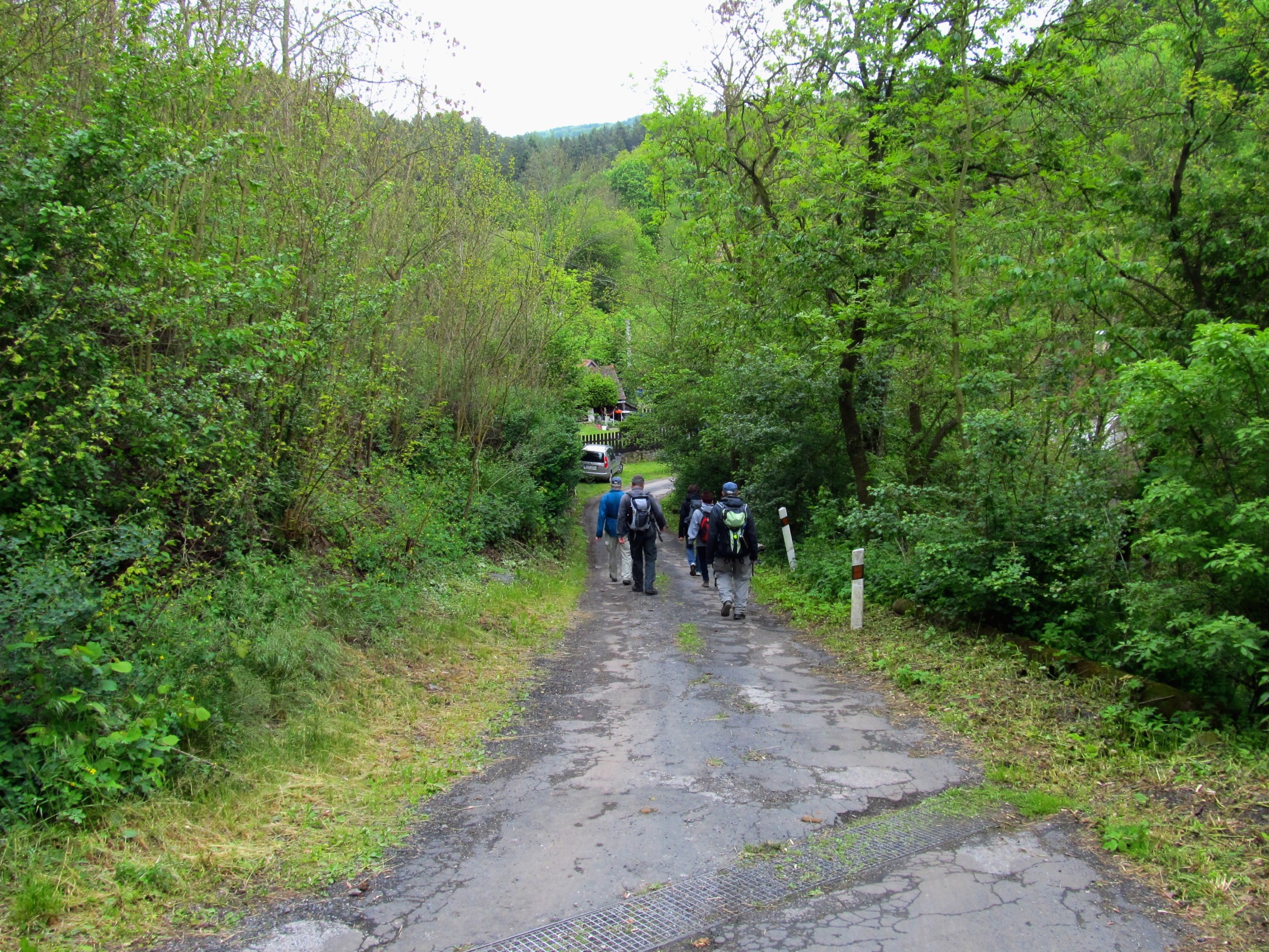 Z cesty asi po třech stech metrech uhýbáme Doprava na pěšinu do údolí krajem lesa podél chat a přes malý potůček.
