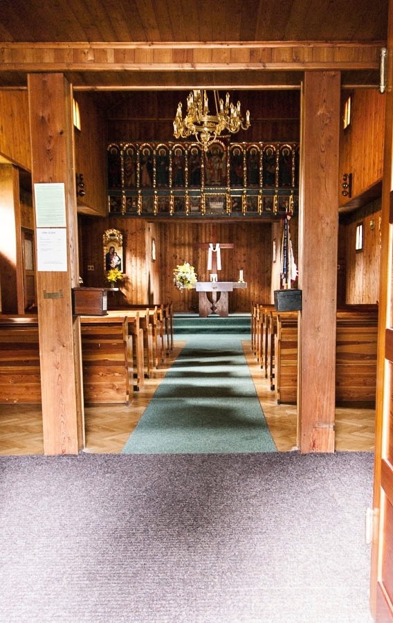Jeskyně se vyvedla, další den bude tak trošku nazdařbůh. Sice jsem původně uvažoval o další jízdě do centra krasu, ovšem podle vyprávění některých výletníků je nedaleko k vidění pštrosí farma a tu prý musíme vidět. Nutná bude tedy úprava zamýšlené trasy. Začátek je ale podle původního plánu, to jest přímo do kopce nad blanskem. Jak ale vyjíždíme do vršku, malá zastávka u kostela k opravě přehazovačky. Kostel ovšem velmi zajímavý. V blansku mají dřevěný kostelík přenesený ze Zakarpatské Ukrajiny za první republiky. Původně pravoslavný dnes slouží jako kostel Čs. Církve husitské, ale vybavení je v podstatě původní. Jak tak nakukujeme přes mříž, kolem kráčí nějaký místní občan, nechceme-li dovnitř. Samozřejmě ano, vzápětí je tu s klíči a vypráví nám o historii a výzdobě. Vypadá dost civilně tak se zeptám, je-li tu kostelník, on přímo farář. Zdání občas klame, ale husitská církev je jedna z reformovaných, takže se to u nich tak nebere vážně.