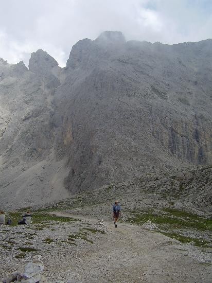 Dolomity-Gardeccia: Pohled z cesty na vrchol Antermoia