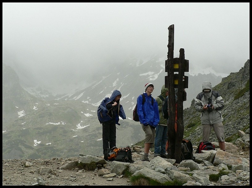 Od budovy gymnázia jsme vyjeli v deset hodin večer, ve dvě hodiny ráno jsme v Brně naložili zmíněného kuchaře Petra s jeho vybavením. S napětím jsme sledovali vývoj počasí. Jeli jsme tak rychle, že jsme projeli studenou frontu zásobující vláhou Čechy. Bylo jasné, že první túra bude pěkně mokrá. Proto jsme ráno po tatranském probuzení vyrazili ze Štrbského plesa jen k plesu Popradskému.