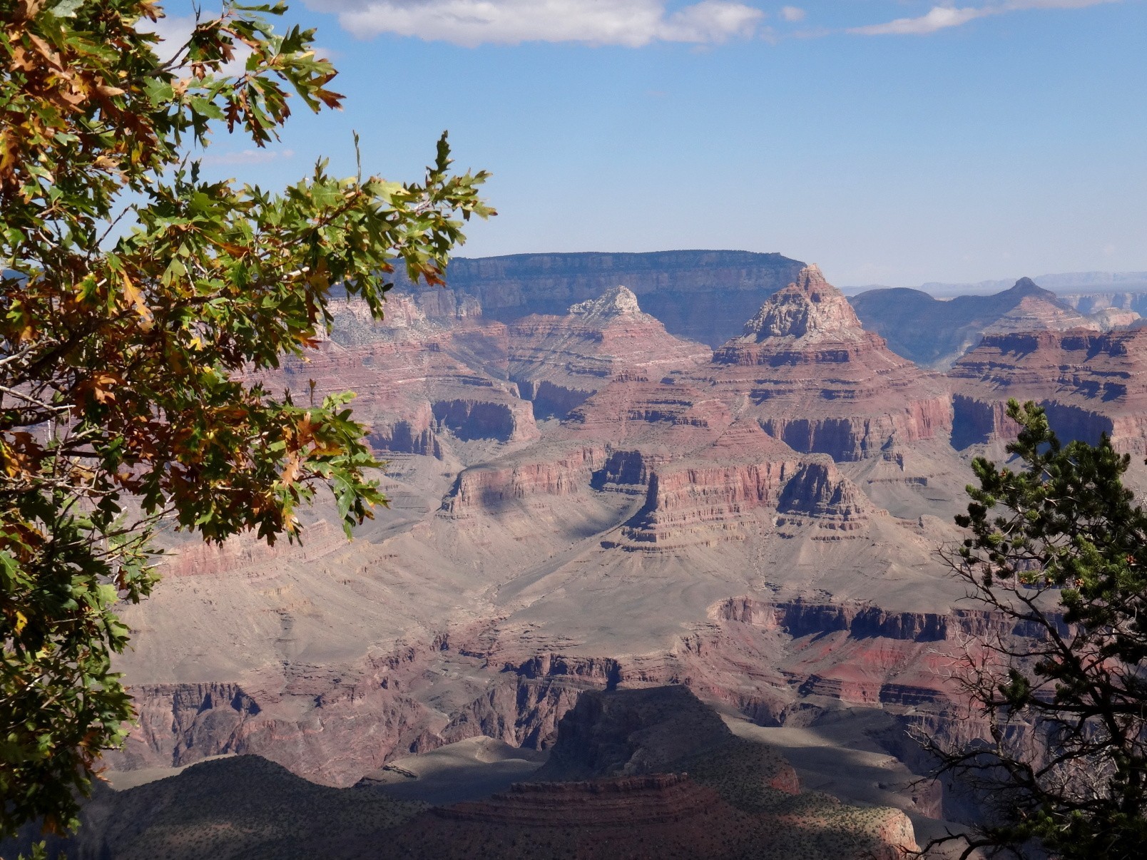 Cílem naší dnešní 664 km dlouhé cesty je hlavně Grand Canyon NP ve státě Arizona. Od motelu vyjíždíme v 6.40 hod. a první zastávku máme v městečku Cameron, kde je restaurace a hlavně umělecká galerie Indiánů. Vlastně ani nevím, jestli je to městečko nebo jen pár budov na jednom místě. Grand Canyon je jedinečný přírodní úkaz a zastávky budou na nejkrásnějších vyhlídkách Desert View, Moran a Grandview Point. Plocha parku je 2720 km2. Kaňonem protéká řeka Colorado, pramenící ve Skalistých horách a je regulována přehradou Glen Canyon Dam. Další přehrada Hoover Dam u Las Vegas vytvořila jezero Lake Mead. První zastávka je na nejvýchodnější vyhlídce Desert View s kamennou vyhlídkovou věží. Tato Watchtower je 21 m vysoká, stoupáte po schodech a na zastávkách v jednotlivých patrech jsou vyhlídková okna. Stěny věže jsou pokryty malbami Indiánů kmene Anasazi. Z věže je do kaňonu nádherný výhled.