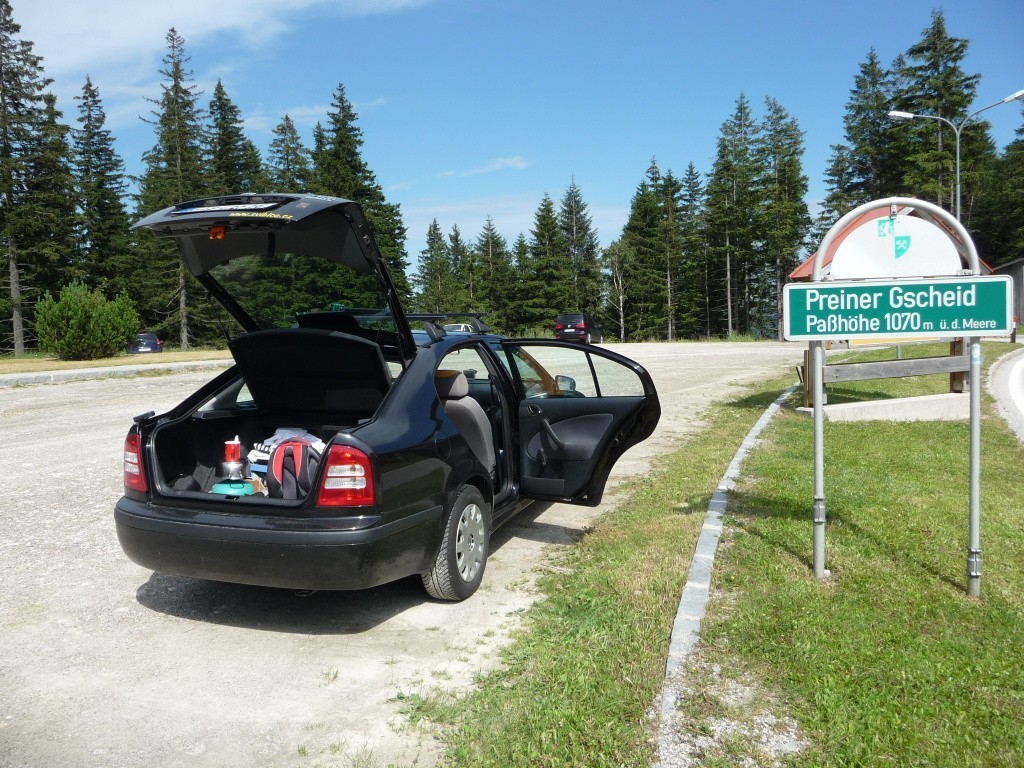 Náhorní plošina Raxalpese nachází jihozápadním směrem zhruba osmdesát kilometrů od Vídně. Tak jak jsme zvyklí z těchto destinací, je značení cest na vynikající úrovni tudíž v době Internetu a navigací není problém trefit naPparkoviště v sedle Preiner Gscheid (1 070 m), což je výchozí bod k našemu cíli. Parkoviště je rozděleno na dvě částí, placenou a zdarma, kde ta druhá se logicky plní nejdříve. Je zde i možnost občerstvení ve srubu přímo na teritoriu parkoviště. Prvním částečným cílem byla chata Karl-Ludwig-Haus (1 804 m), odkud úak lze pokračovat na nejvyšší vrchol Raxalpe Heukuppe (2 007 m). Počasí nebylo zcela ideální, tak 50:50 nicméně na výstup je lepší zataženo než horko. Na cestě vzhůru se střídají pasáže od zelených luk, s pasoucími krávami, po počínající strmé srázy, směřující nahoru k chatě Karl- Ludwig-Haus. Po vystoupání ke zmíněné chatě, nás podezíravě sledují , všude přitomní kamzíci. Po lehkém občerstvení cesta vedla dál směrem k vrcholu Heukuppe, kde podle plánu byla odlovena geocach a nafocena fotodokumentace. Z vrchoul Heukuppe se nabízí několik směrů. Nicméně byla zvolena cesta zpét k chatě Karl Ludwig Haus a dále stoupáním na druhý směr pěrs náhorní plošinu Predigtstuhl (1902 m.n.m) Tento vrchol se druhou cestou obejde a vrací se zpět smérem k chatě Waxriegel Haus (1 361 m) a dále směrem na parkoviště Preiner Gscheid. Jak bylo řečeno po vbystoupání k chatě Karl-Ludwig-Haus (1 804 m), se nabízí řada vrstevnicových tras se vzdálesností do 5 - 10 km, vždy s dostupným občerstvením na daném vrcholu, mnohdy i s ubytováním.