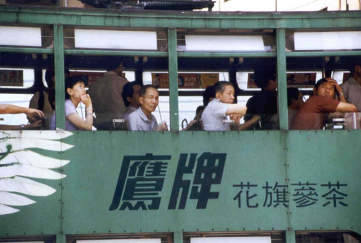Dynamický Hongkong dnes disponuje moderním dopravním systémem, jehož husté linky rychle a spolehlivě spojují hlavní obytné části města. Vedle klimatizovaných autobusů, vlaků a metra působí dvoupatrové tramvaje starobyle, jakoby sem ani nepatřily. Pouhých šest tramvajových linek vcelkové délce 30 km protíná severní část ostrova Hongkong zShau Kei Wan do západní čtvrti Kennedy Town. První tramvaj vyjela vroce 1904 a loni tedy tento způsob Dopravy oslavil své stoleté výročí. Vybavení vozů se od té doby příliš nezměnilo - dřevěné sedačky, okýnka sklikou, kovová zábradlí, mechanický zvonek atd. Jen reklamy pokrývající boky vozů dokládají moderní věk místa, které se nikdy nezastaví - mobilní telefony, parfémy, filmy, internet.