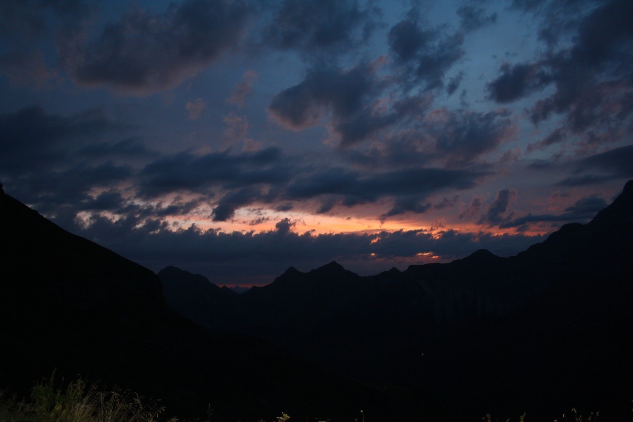 Když o třičtvrtě hodiny později stojíme u dalšího rozcestníku (2.476 m.n.m.), něco se nám nelíbí. Stále nahoru směr Falknis souhlasí, ale modře značená cesta směrem dolů by tady neměla být. Místo toho jsme očekávali odbočku na Mazorakopf a do Lichtenštejnska. Krásné sny o tom, jak přejdeme do sousedního údolí, se rozplývají. Zapínáme telefony a čteme zprávu od Drahoše: „Podél Falknis neschůdné, sestoupíme na Guscha“. Pro upřesnění mu volám a dozvídám se, že šli po modré, ale je tam jištěná cesta, která by nemusela být pro nás za tmy a s batohy na zádech zrovna ideální. Doporučují nám sestoupit zpět k předešlému rozcestníku a tam přespat a ráno se uvidí. Chvíli se s Láďou radíme a ve 20 hodin 15 minut se dáváme za svitu čelovky na sestup. Je to velice zajímavé. Správný směr se obtížně hledá, častému bloudění se nevyhneme. Ale i tato hra „na schovávanou“ s červeně značenou cestou má své kouzlo. Několikrát zazní: „tudy cesta nevede, musíme zpět“. Po půl hodině přicházíme tam, kde jsme byli v 19 hodin. Fläscher Fürggli (2.248 m.n.m.). A tak si opakuji starou dobrou známou poučku, že zabloudit se při putování přeci nedá. Tam, kam člověk dojde, je vlastně cíl jeho cesty. Původní plán toulat se za svitu krásného měsíce a zářivých hvězd horami i údolími doznává změn.