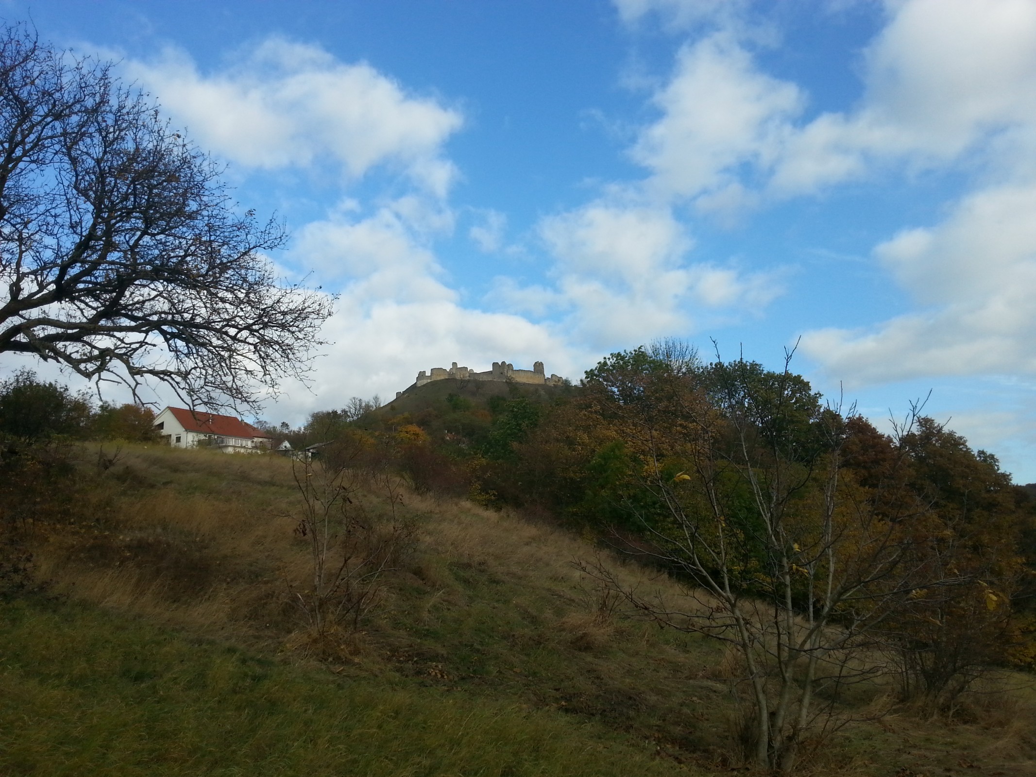 Vyrazili jsme tedy dopoledne a vítr nám dul do zad. Smích mně však brzo přešel při sjezdu ze Zamčiska v lese, kde bylo na asfalce plno mokrého listí. Zadní kolo mi neustále ujíždělo a já měl pocit nekontrolovanosti - jako když pluhuju na běžkách zamrzlou stopu u Paprsku. Nakonec to zvládám, ale to horší ještě přijde. V Senici najíždíme na cyklostezku, která nás vede až ke kunovské přehradě. Tady to končí a my se vydáváme po polňačce směr Podbranč - dle názvu víska pod hradem. Někde jsou cesty po posledním dešti vysušeny, v dolinách a v chládku bohužel. Tady z kola sesedám a z kopce tlačím, bláto se mi dostává mezi přední kolo a rám. Ujišťuji se, že závodka opravdu patří na asfalt a že ze mně Radomír Šimúnek taky nikdy nebude. Projíždíme ještě pár samot, kde jsou překrásný domečky a nekonečný boží klid. Z Podbranču to přes les při stoupání asi 20% jenom tlačíme. Mám žízeň, ale Standa říká, že je navrchu těsně pod hradem studna. Nekecá a roste u ní i planá hrušeň. Hrušky jsou sladké a přijdou k duhu. Voda taky. Na vrchu na hrade fouká vichr, ale výhled za to stojí...Nádherný. Zpět se vydáváme přes Bukovec po pekné asfaltce. Odtud dlouhatánský sjezd do Prietrže. Za Prietrží