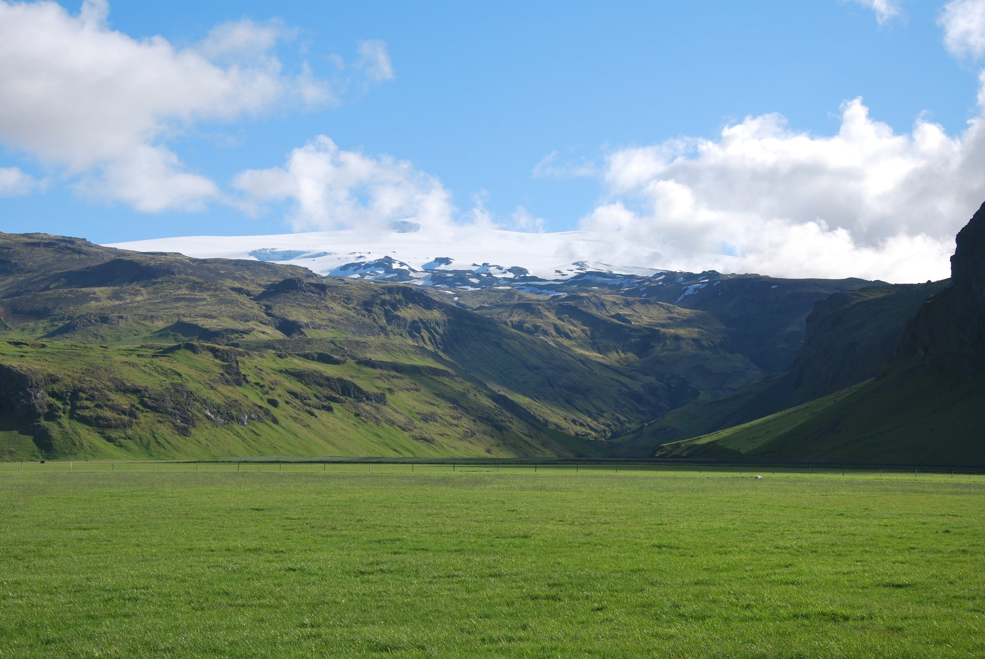 Pěšina stále víceméně stoupá po kamenech a sněhových polích. Nalevo obdivujeme ledovec Ejafjallajökull a napravo několikanásobně větší ledovec Mýrdalsjökull. Na obloze rostou termické kumuly, ze kterých v jednu chvíli začíná drobně pršet. Na nic nečekáme a pohotově oblékáme nepromokavé oblečení. Nakonec ale déšť přejde stejně rychle jako přichází a membránové oblečení opět mizí v útrobách batohů.