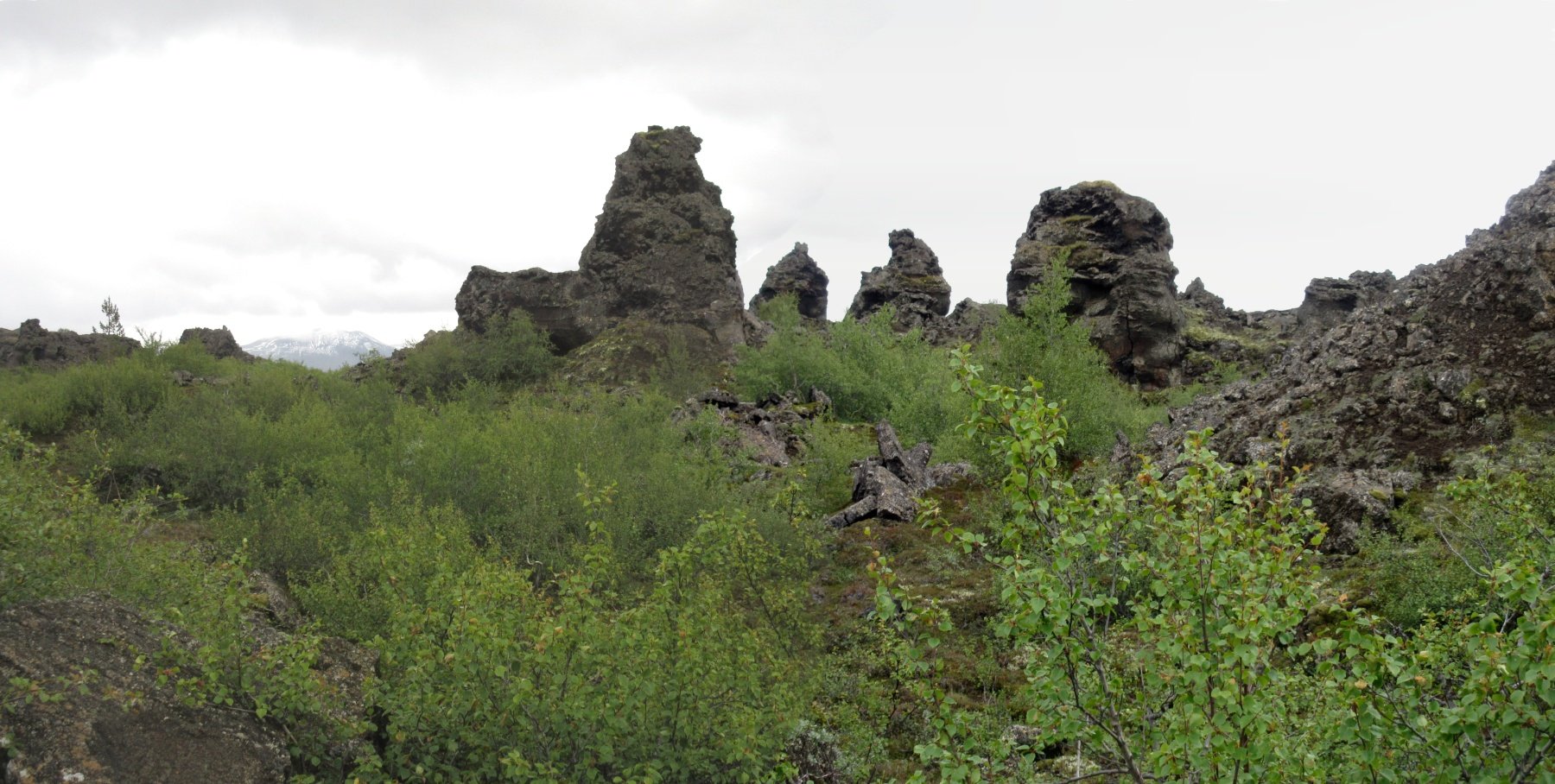 Island – výlet z oblasti Dimmuborgir přes sopku Hverfjall do kempu u jezera Mývatn