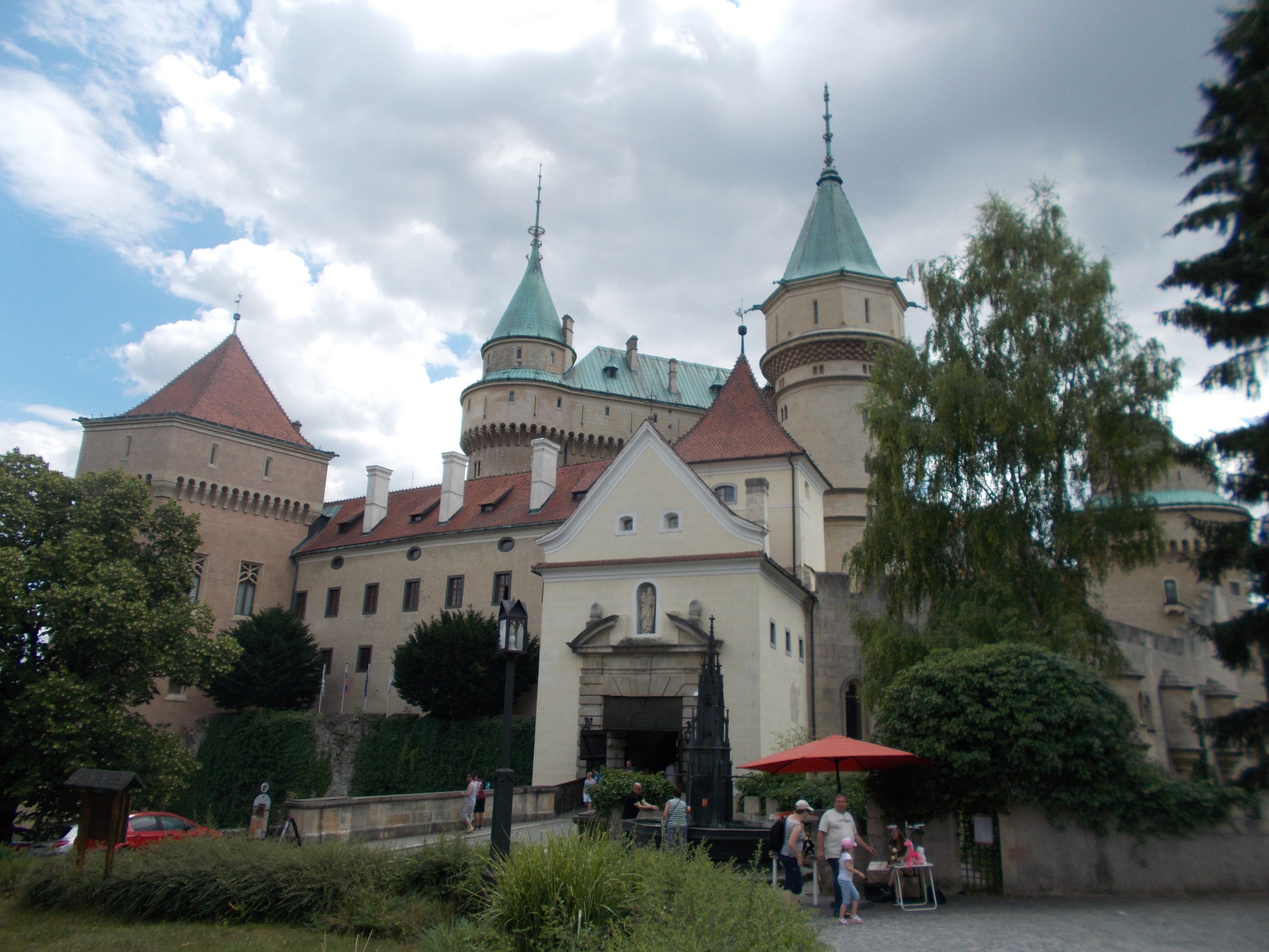 Po nějakém čase jsme dorazili do Prievidze, kterou jsme projeli a aniž bych to pořádně postřehl, najednou jsme byly v Bojnicích, neměl jsem totiž až do této doby tušení, že Prievidza a Bojnice jsou téměř spojené, zase o něco chytřejší. Projeli jsme alespoň dle mě hezké bojnické náměstí, odkud na nás už koukal Bojnický zámek a za chvíli jsme stupali k parkovišti nedaleko zámku, kde jsme auto odstavili a dál už museli pouze po svých. Chtě nechtě jsme prošli tržištěm, kde to byl samý stánek hlavně s lázeňskými oplatkami- nechápali jsme s Ivanem, jak se tolik stánků s tím samým může uživit.