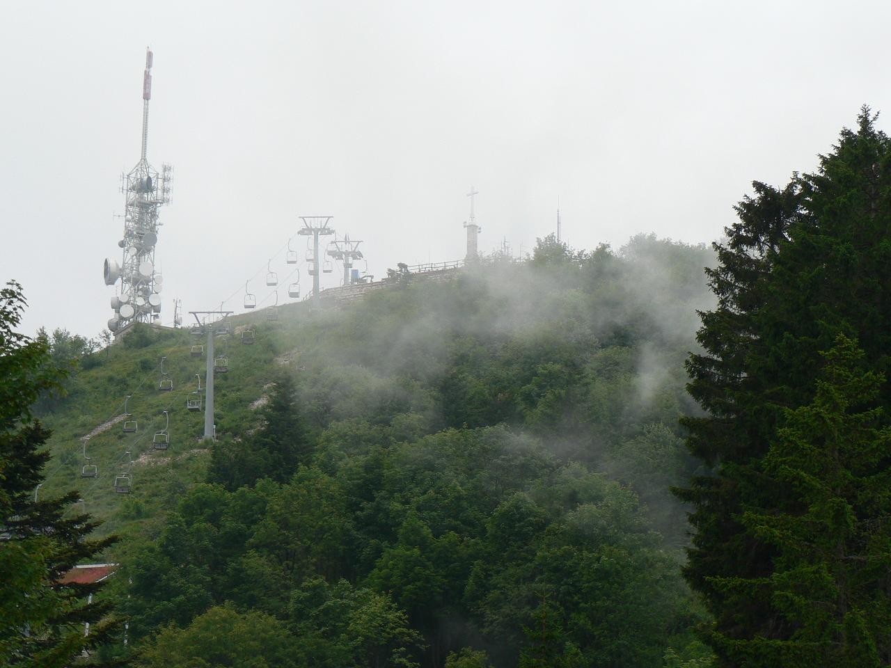 Náš pobyt u jezera Lago Maggiore se blížil ke konci. Poznali jsme několik krásných míst a získali mnoho nových námětů k výletům. Tím nejlákavějším byl výstup na nejvyšší vrchol pohoří mezi jezery Lago Maggiore a Lago d´ Orta. Výška vrcholů se pohybuje okolo 1000 m.n.m. a jen jediný z nich Monte Mottarone je převyšuje skoro o 500 metrů. Se svými 1491 m.n.m. je nejvyhledávanější horou v oblasti. Slibovanému pohledu na větší část hlavního hřebene Alp a východní stěnu Monte Rosy nešlo odolat. Skutečnost výškového rozdílu mezi výchozím městem Stresou ( 205 m.n.m.) a vrcholem je skoro 1300 m a pohled na svahy hory nás odradili od pěšího výstupu. Zamítli jsme i možnost využít silnice, která vede pod vrchol hory a zvolili lanovku. Cesta nahoru trvala okolo 20 minut a ve stanici Alpino 803 m.n.m. jsme přestupovali. Jak to na horách bývá pár minut po přestupu kabinku obklopila mlha a neopustila nás ani na konečné, která je 1385 m.n.m. Odtud je možné pokračovat sedačkovou lanovkou na samotný vrchol. Viditelnost nebyla žádná a tak jsme se rozhodli jít dále po svých s nadějí, že se počasí změní. Citelné ochlazení vyrovnávalo zahřátí získané Ostrým stoupáním. Konečně se v mlze objevuje několik stožárů a vrcholový kříž. Letící mraky se občas roztrhly a umožnily několik pohledů na nejbližší okolí. Chodili jsme po loukách pod vrcholem a poznávali zdejší květenu. Ta nejkrásnější, Jarní, sice již odkvetla, ale několik zajímavých druhů jsme ještě našli v plné kráse. Učaroval nádherný trs žluťuchy, impozantní, ale prudce jedovatá kýchavice se také nedala zahanbit. Kvetly ještě modré zvonečníky, žluté prasetníky, jestřábníky, štírovník a keříčky kručinek. Dokonce jsme našli i orchidej - z rodu prstnatců.Čas ubíhal ale nepřicházel žádný náznak změny. Prohlédli jsme si letní lyžařskou a sáňkařskou dráhu a další sportovní zařízení na západním svahu a dali se na ústup. Počasí se bohužel nedá porazit. Nevím, zda se naplnily zákony schválnosti, anebo se slitoval duch zdejších hor a dopřál nám pohled na jezero s Borromejskými ostrovy a město Stresa, které jsou odtud jako z pohádky. Při cestě k lanovce je hezký kostelík Madonna della Neve. Uvnitř je moderně ztvárněna Svatá rodina. Cestou zpět jsme ještě u stanice Alpino navštívili veliké alpinum, kde je soustředěna alpská květena. I zde platilo, že jaro je dávno pryč a kvetlo sem tam něco. Celá zahrada je pojata velkoryse a za návštěvu stojí. Z menší výšky se opakuje pohled na jezero. Zahrada je přímo vzorně udržována a je zde i několik koutů k posezení. U stanice lanovky je roztomilý domeček s venkovním posezením a vaří tu výbornou kávu. Konec cesty, kdy se lanovka blíží k hladině jezera a nad vodou vjíždí do stanice je zážitkem. Monte Rosu jsme sice neviděli, ale na Monte Mottarone jistě budeme vzpomínat. Cena za lanovku tam i zpět byla 17,50 euro a bylo v ní zahrnuto i vstupné do zahrady. Lanovka jezdí v dvacetiminutových intervalech od 9.30 hod a v poledne je hodinová přestávka.