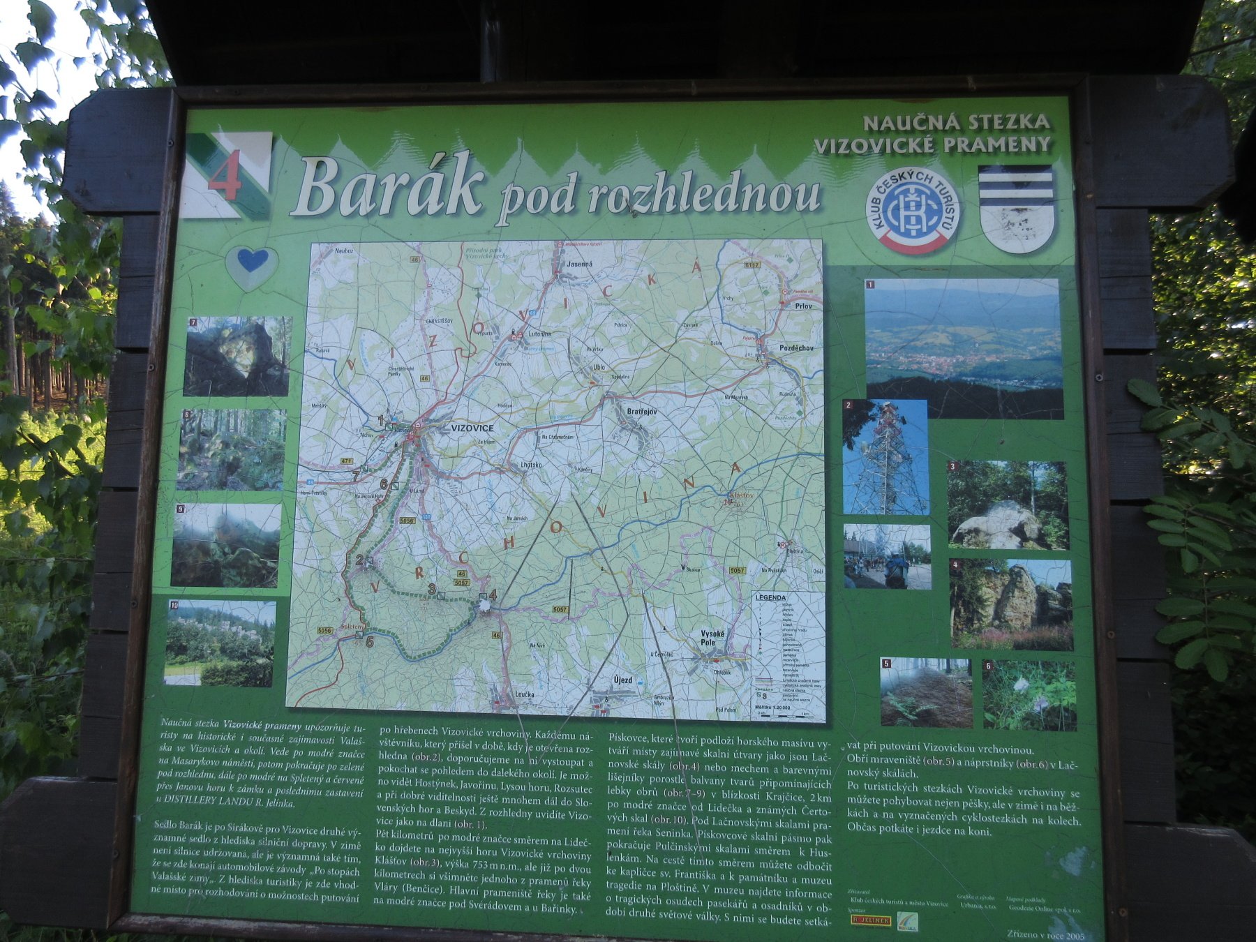 naučná stezka Vizovické prameny. Celý okruh je 18 km dlouhý a vede ze žel. stanice Vizovice. Na 7 tabulích seznamuje turisty s historickými a přírodovědnými pozoruhodnostmi Valašska a Vizovicka. My jsme si tedy přečetli jen to 4. zastavení, které je