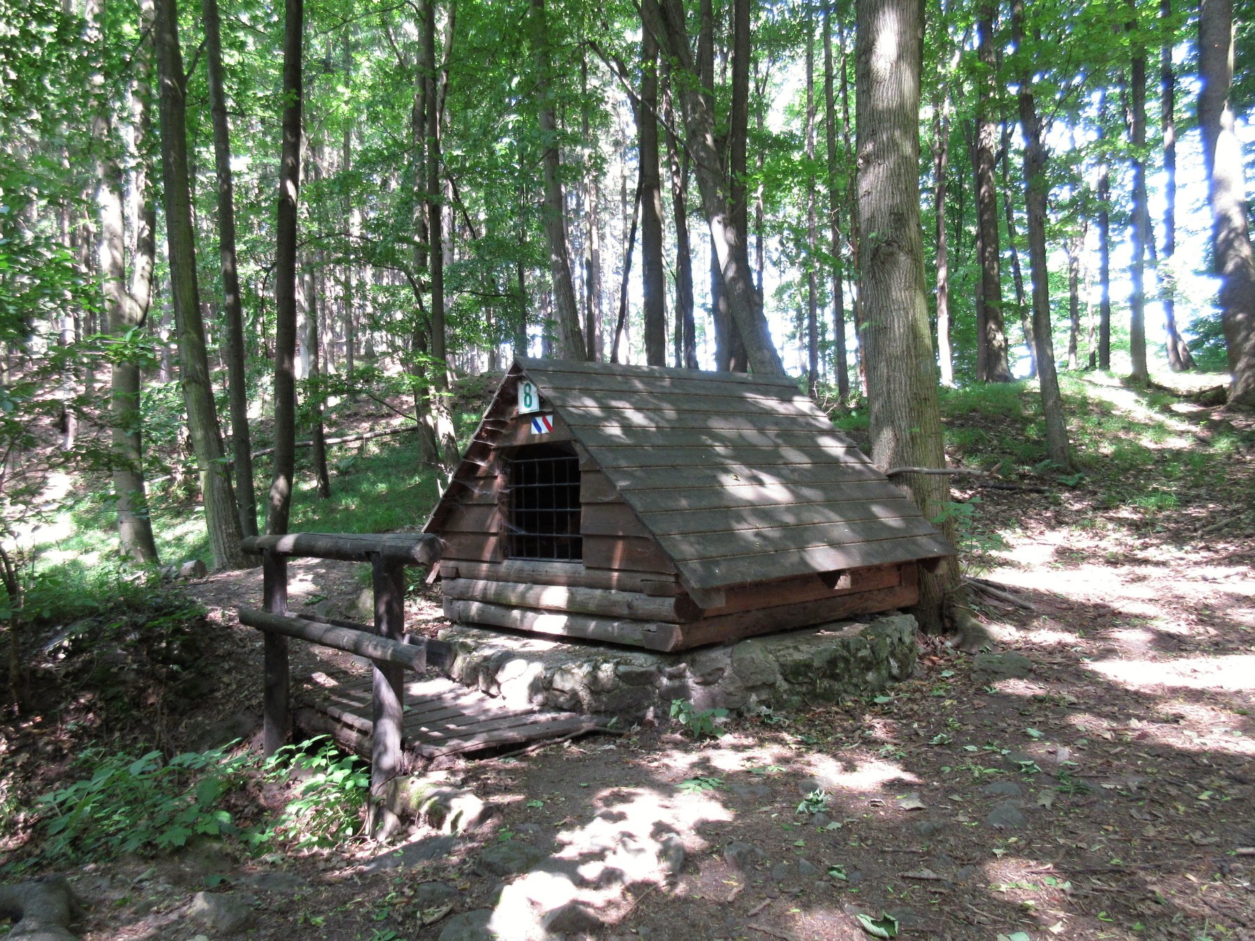 Na rozhledně je cedulka, že klíče lze vyzvednout v hostinci. Vracíme se do vsi, hostinec je zavřený, i když dle otevírací doby má mít již otevřeno. Nedá se nic dělat, na rozhlednu se nedostaneme. Vracíme se k ní, dnešní program končíme. Spát budeme tady. Počasí je nejisté, tady je jistota, že na nás nic nespadne.
