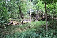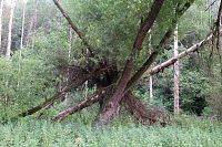Jsme sice v rokli, jenže tou roklí nejdeme po rovině, musíme ještě klesat. Už cestou jsem si říkala, že je to tu místy jak v pralese. Popadané stromy zůstávají ležet, kam spadly. Když jsme přes klády přelézali na rovině, tak to problém nebyl. Tady to je výrazně horší. Klouže to tady, stromy tu překáží, přelézají se dost špatně. Značky nejsou ani tady v rokli. Ota tvrdí, že tudy už dlouho nikdo nešel. Jsou tu však čerstvé stopy, jak se tu někdo klouzal. Nejsme sami, kdo měl tak praštěný nápad tudy projít.
