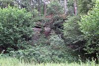 Konečně jsme v rokli, kde je 6. zastavení Studánka v Medníku. Když se hodně snažíme, tak se nám podařilo tu studánku najít. Je to klenutá pískovcová stavbička pravděpodobně z poč. 19. století, která byla jedním ze zdrojů pitné vody. Vesničané ji využívali až do r. 1910, kdy byl do obce zaveden vodovod. Dnes je studánka vyschlá.