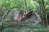 Pískovcové útvary nad kokořínským dolem, západně od obce Vojtěchov. Vznikly selektivním zvětráváním pískovců, za což může vyluhování železa z třetihorních vyvřelin podzemními vodami a vysrážením hydrátu oxidu žele…