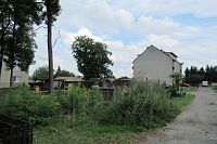 V horní části, kde bydlela babička, je však téměř vše jinak. Hlavně vlevo při pohledu od kostela. Na místě zbouraného kravína, prasečáku a vil stojí bytovky. Prostor okolo je rozdělen na minizahrádky. Někdo to má hezké, ale většinou je to jako skladiště. Tato část obce se mi nelíbí. Podle mapy.com tam má být nějaký rybníček, dokonce dva, ale k těm jsme se nedostali. Poznala bych to podle vrby, ta tam není. Neuměla jsem ani přesně identifikovat původní park se třemi smrky. Dva byly postupně poraženy jíž dřív, jeden dlouho přetrvával. Vždy jsem se dívala, zda stojí, když jsme jeli po hlavní silnici. Nyní už ani ten jeden nestojí. Bytovek je tam však dost. Takže jsou určitě i na místě zmíněného parku a sadu.