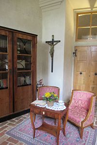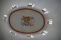 Až když jsme se vrátili z ochozu do místnosti, dozvěděli jsme se, že dřevěná podlaha na ochozu je nová, ale drží je původní pískovcové krakorce. Nespadlo to s námi, tak to je to podstatné.