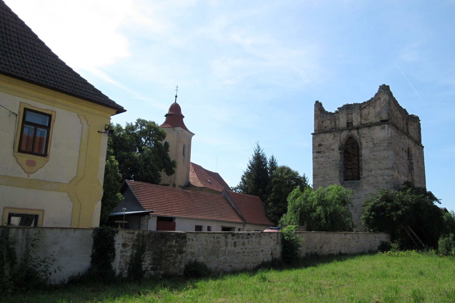 První písemná zmínka o obci je z r. 1178. Toho roku daroval tehdejší český kníže Soběslav II. zdejší popluží vyšehradské kapitule. Ta tady měla patronátní právo, tj. právo jmenovat faráře. Sice ze 13. století se nedochovaly žádné dokumenty, ale podle dosud patrných románských a gotických prvků, byl v té době postaven kostel sv. Martina. Před r. 1329 byl upraven. Ve 14. století, kdy byl kostel prokazatelně farním kostelem, byla pravděpodobně postavena hranolová zvonice. Po požáru r. 1677 již nebyl opravován. Loď kostela byla zbořena v souvislosti s výstavbou nového barokního kostela sv. Martina v letech 1769 – 70. Staré náhrobní kameny byly použity jako stavební kámen.
