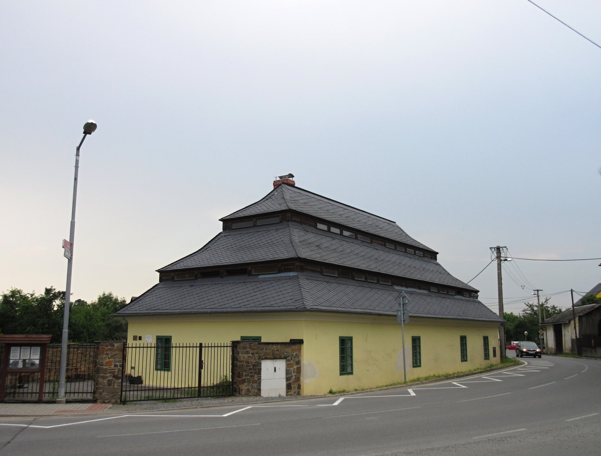 Z centra obce je to k zámku kousek. Tak snad se stačíme vrátit, než začne pršet. Ještě v centru hned u hlavní silnice je historická budova Vošárna. Ani nevím, co si pod tím představit. Na místě se dočítáme, že se jedná o zámeckou prádelnu a sušárnu. Ze kdy je pozdně barokní objekt, ve kterém původně byla obecní prádelna, to se asi ani neví. V letech 1823 – 1826 byla přestavěna na zámeckou prádelnu, která byla využívána až do r. 1945. Pak se tam nějaký čas bydlelo, posléze byl objekt opuštěný a už jen chátral. Až r. 2007 objekt vydražilo Občanské sdružení Vošárna, které se pustilo do obnovy. Přitom získali cenné doklady o systémech fungování. Objevili tam sestavu zrcadlově postavených topenišť s obslužnými cihelnými podestami, základy po topných tělesech a vyvařovacích kotlech. Přikládalo se z vedlejší místnosti, dým byl odváděn otevřeným dymníkovým ústím komína. Byl odkryt zaklenutý nakládací otvor, otvor pro odběr popela, vyústění kouřových sopouchů. Byla objevena řada dalších detailů, o kterých se vůbec nevědělo. Díky tomu bylo zjištěno, jak to vlastně fungovalo. Součásti provozu bylo bělidlo u potoka. Jedná se o ojedinělou stavbu tohoto typu.