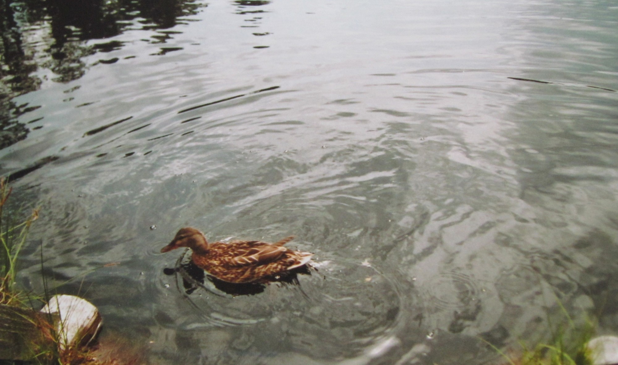 Po krátkém odpočinku se vracíme stejnou cestou až dole do údolí k mostku a odtud zkratkou ( dle mapy) lesním průsekem na silničku, kousek po ní a pak se napojujeme na žlutou značku, která vede k Rejvízským rašeliništím. Místy tu jsou bažiny a močály, které překonáváme po dřevěných mostcích a lávkách. A taky se kolem nás udává veliká změna : jesenický horský les se tu pozvolna mění na ten "pravý" šumavský !! Po další lávce přecházíme přes Černý potok, začínají se tu rojit turisté a pak máme pod nohama haťový chodník a ten nás vede až ke vchodu do přírodní rezervace. V pokladně si kupujeme nějaké pohlednice a platíme symbolické vstupné ( 12 kč za osobu). Stále po haťovém chodníčku asi tři čtvrti km k Velkému mechovému jezírku. Dnes je bohužel moc krásné počasí a to zdejším místům vůbec nesluší - chtělo by to pořádnou anglickou mlhu, aby vynikla tajemná atmosféra blat a přízračného lesa !! Z vyhlídkového mostku máme hezký pohled na celou hladinu "bezedného" jezera a na protější břeh. Pod námi ve vodě defilují divoké kachny a do vody se za nimi vrhá pes jednoho z návštěvníků !! ( Já opravdu nechápu systém ochrany přírody v této zemi : všude samý příkaz, rozkaz, nákaz a zákaz - kam člověk nesmí vstoupit a co nesmí dělat, aby nevyplašil vzácnou chráněnou zvěř a přitom je všude do přírodních rezervací dovolen vstup lidem v doprovodu jejich psů !!! A to se ani nebavím o motorkářích a čtyřkolkářích, kteří si z těchto zákazů dělají kulové a rozezlení ochranáři si pak schlazují žáhu na polapených pěších turistech ..!)