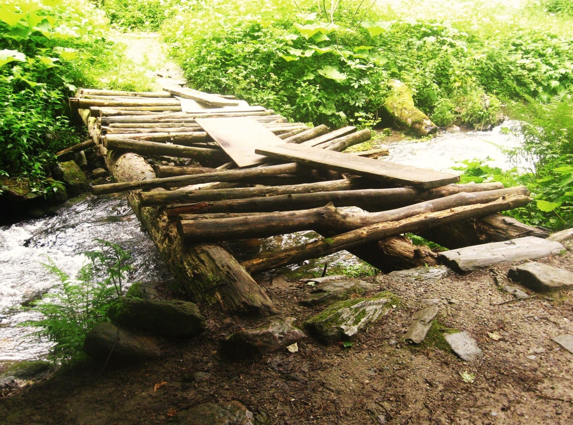 Dál už naviguju řidiče já podle mapy, protože takhle je to mnohem rychlejší. Přes Paseku do Dolní Loučky a odtud serpentinami nahoru kopcem do Rudy, kde za dědinou zaparkujeme auto na louce. Berem si věci a od turist.rozcestníku pod velikou lípou po žluté značce na Rešovské vodopády. Má to být 2.5 km, z toho jdeme více jak polovinu po rozmáčené zarostené stezce s křovinami, pak se nám značka náhle ztrácí a tak přes mokrou louku až na její konec. Lesem scházíme ke skalnímu hřebeni, kde značku znovu nacházíme a půl km zestup kolem nádherné hradby rulových skal - paní X se rozplývá nadšením: prý jak by se tu dobře tábořilo a "pařilo" - radši to nekomentuju, protože vysvětlovat jí, že se nacházíme v přírodní rezervaci, je docela zbytečné. Konečně dole u Fialova mlýna. Ten je v pokročilém stádiu zdevastovanosti, to samé platí i o mostku přes říčku Huntavu. Při přechodu na druhou stranu si musíme vzájemně pomáhat a to ani nemluvím o přechodu přes močál ještě před mlýnem !!