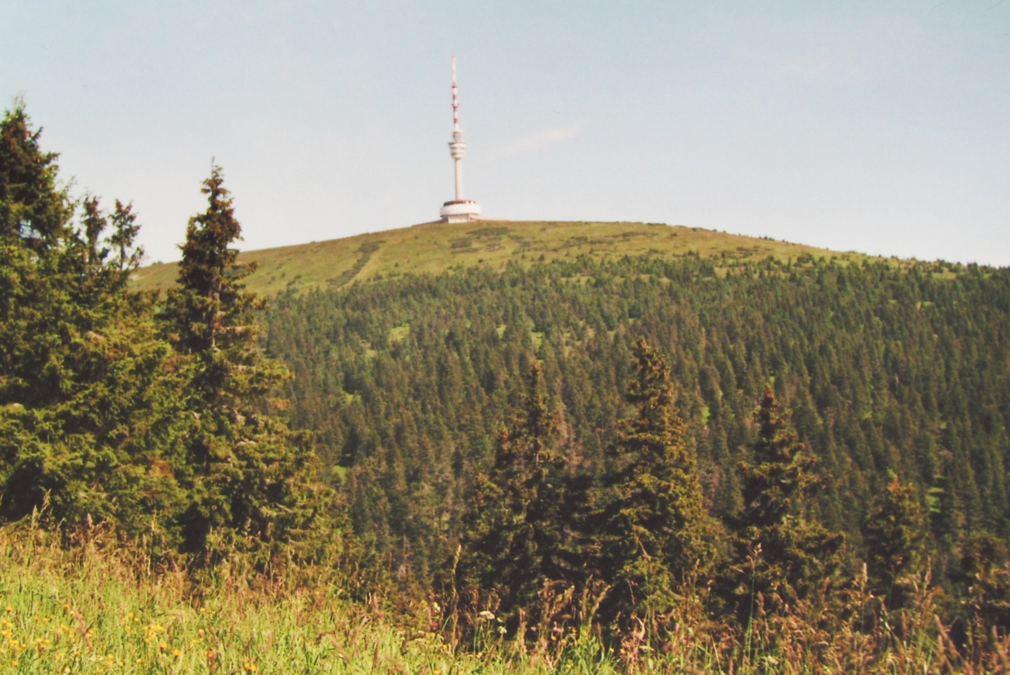 Po obědě po asfaltce velikým obloukem na vrchol nejvyšší moravské TOP - hory - Pradědu. Původní červená značka k vrcholu byla zrušena a pro turisty uzavřena kvůli ochraně přírody. Cesta 3.5 km po asfaltu není nic příjemného, ale ...je moc hezky, rozhled na celé horstvo Jeseníků a podhůří je dnes plastický a fantastický a je to poprvé, kdy mi tady vyšlo počasí - a to už jsem nahoře na Pradědu potřetí v životě !!! Rozhledna je zatím ještě pro veřejnost uzavřena, funguje ale už bar a restaurace !