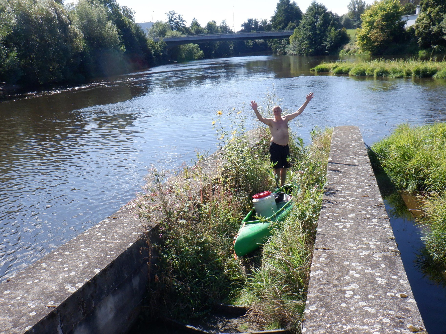 Jeden pan rybář nám před chvílí říkal, že v té šlajsně půjde loď dobře přetáhnout.