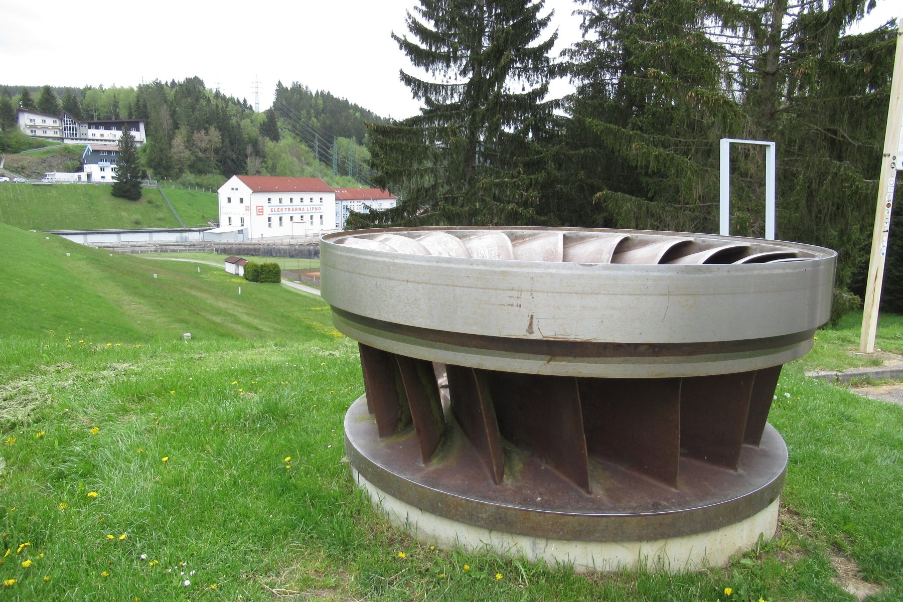 Odjíždíme na parkoviště Lipno nad Vltavou, které je hned u hráze vodní nádrže. Tady je vystavené původní oběžné kolo Francisovy turbíny ze zdejší elektrárny. Vyrobilo ho ČKD Blansko, váží 7 tun a v provozu bylo 28 let.