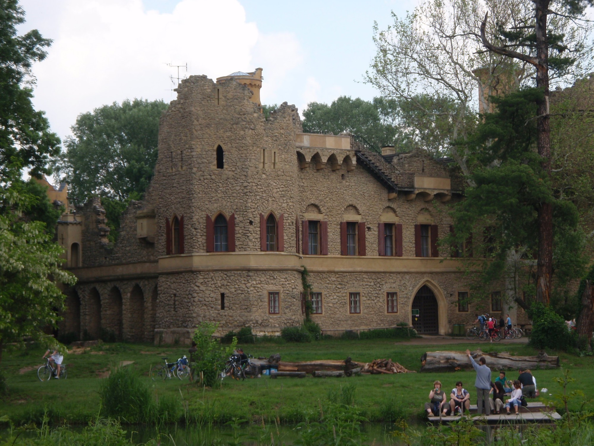 Lávka, kterou vystavěli italští filmaři, aby nemuseli obcházet vodní tok Dyje, přivedla naší trojici turistů přímo před umělou zříceninu hradu. Zakoupili vstupenku a než začala prohlídka, trochu se občerstvili ve stánku.