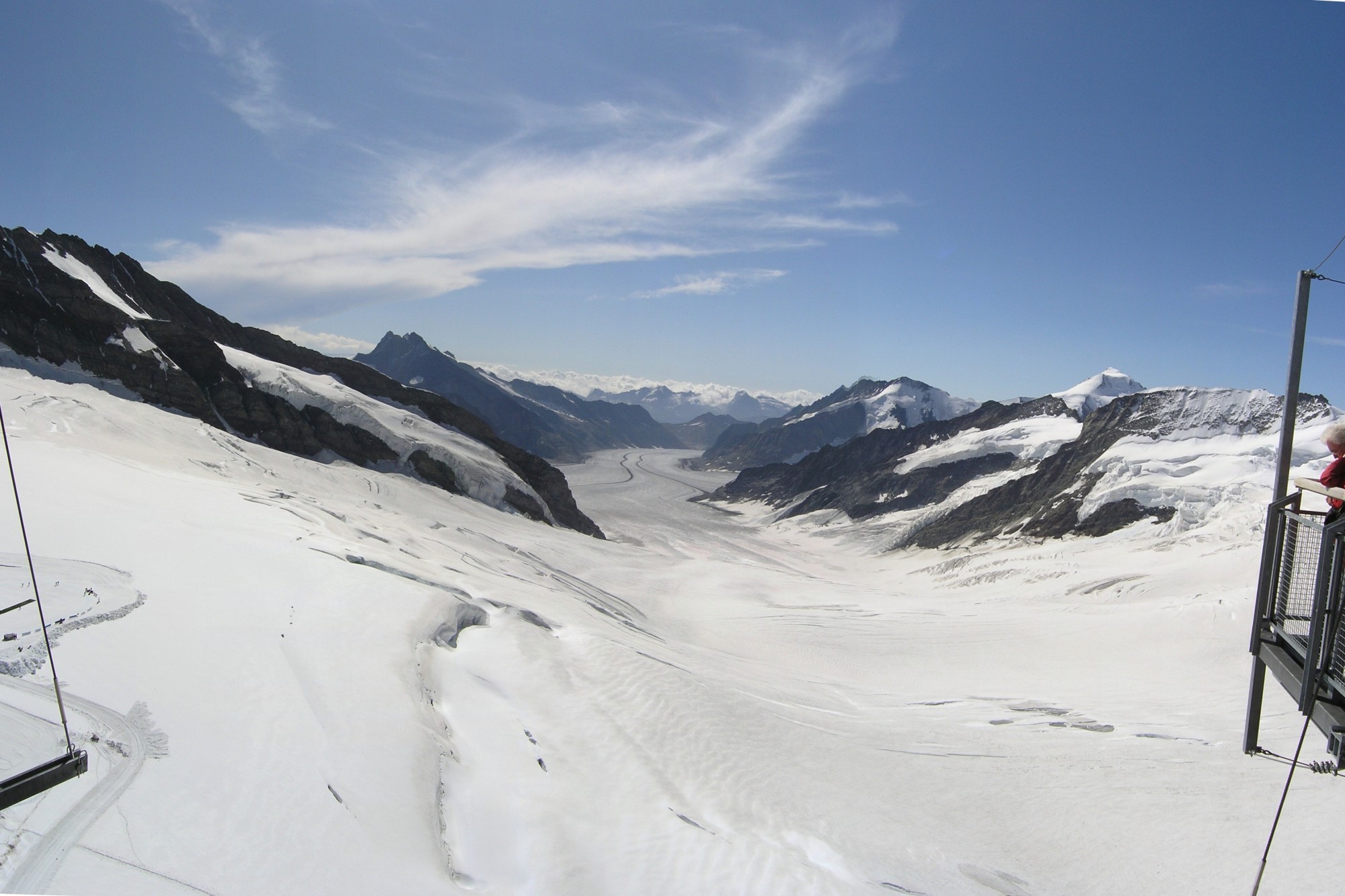 Kdo by nechtěl vidět to nejšvýcarštější švýcarsko. Jedeme z Teplic po dálnici přes Drážďany/jako nejrychlejší cesta od michelinu/podél francouzských hranic.Víme co chceme vidět, tak v Interlakenu odbočujeme na Wilderswil a protože je tam volný kemp dál nejedem.Stavíme stan/to jsme doma podcenili a vzali malý.Židličky jsme také nevzali/.Cesta trvala cca 11h. i spřestávkami,956km.Hned při přihlašování se v kempu jsme si koupili tzv.JUNGFRAUBAHNENPAS.Jsme 2 dospělí/děda a babi/a vnuk_10 let.Pro dospělého za 200 sfr.na 6 dní dítě za 20 sfr.nacelý rok.Na tuto permanentku jezdíme zdarma vším co tam jezdí.Že se nám to vyplatilo, jsme se přesvědčili.Auto neujelo ani kilometr a každý den jsme byli někde jinde,vlak jezdí každou půlhodinu od 6 do 23h.tam i zpět.Kam všude dojedete je vidět na mapce- červená je pro vás zdarma. 2. den. Je hezky/a to bylo téměř stále/vyrážíme na Jungfrau.Nejdříve vlak-máme to na nádraží 7 min. pěšky.Musíme si dát pozor do jakého vagonu nastupujeme, půl vlaku jede do Grindelwaldu,druhá do Lauterbrunnen,vlak se v jedné stanici rozpojí ,že to ani nezaznamenáte.V Grindelwandu přestupujeme/konečná/na vlak na Klaine Scheidek ten nás tam vyklopí a zase přestup!Tentokrát jedeme tunelem celou cestu.Tam, kde se vlaky míjejí je zastávka a můžete se jít podívat ze skalního okna na stěnu Eigeru.Z těchto oken byl vyhazován narubaný materál při ražbě tunelu 9km dlouhého.Stavba se protáhla na 16let.Na konečné vystoupíte ve skále a buďto půjdete do ledové jeskyně,která je hned vedle nádraží,a pak na skalní vyhlídku kde vás budou studit nohy od sněhu nebo vyjedete výtahem na vyhlídkovou plošinu a máte vyhlídku na kterou nezapomenete. Při cestě kamkoli míjíte cedule s upozorněním choďte pomalu, abyste na schodech nezkolabovali.Pro jistotu jsou výrazně označená tlačítka rychlého přivolání lékaře.Asi už mají své zkušenosti.I nám se dýchalo o poznání hůře.Těch 3 500m.je znát.Cesta celkově zabere 3h.nahoru a stejně dolů-míněno do a z Interlakenu.Na tento vrchol je nutno zaplatit 50 % ceny. 3.den měníme směr a jedeme na Lauterbrunnen.Dál pokračujeme lanovkou na grůtschalp tam přestup na vláček,pak zase lanovka na Allmendhubel.Vnuk se prochází kneippovou léčebnou stezkou/kamení hrubé, jemnější,štěrk,kůra,dřevěné špalky,studená voda.Líbí se mu to, tak jde ještě jednou.Z této vyhlídky jdeme na další lanovku na Schilthorn-2 960m.Pyšní se faktem,že se tam filmovala část s agentem 007.Tato lanovka ja také se slevou.Počasí nám přeje,nemá to chybu.Sjíždíme až do nejspodnější stanice v Můrren a jedeme autobusem asi 3km podívat se na Trůmmelbach falle.Je to vodopád ve skále.Výtahem jedeme asi 80 výškových metrů a pak vybudovanou cestou z části ve skále nebo vnějšími galeriemi sledujeme mohutný proud vody,který s mohutným řevem padá chvíli do tmy ,chvíli na světle,úhly pohledu se mění tak, jak sestupujem dolů.Všude víří kapičky vody,takže se nedá dobře fotit ,objektiv je orosený,ale je to uchvacující. 4den.Na nádraží ve Wilderswilu, při každém našem odjezdu vlakem obdivujem vyhlídkové vagonky s malou lokomotivou a tak s nimi dnes vyjedeme na Schynige Platte 2000m-vrchol nad Interlaken.Cesta trvá asi 55min a z vláčku, který má jen 2 vagony postupně vidíme Wilderswilské údolí i kemp kde jsme.Na konečné volíme jednu z cest a procházíme alpskou zahradou ,kde je na 600 druhů alpské květeny ,včetně alpské protěže .Stále něco kvete a je tam voňavo .Asi po hodině chůze dorazíme na vyhlídku, ze které je Interlaken jako na dlani.Placatíme se tam po různých vyhlídkách až do poledne,pak nadšeni jedeme zpět.Z vlaku vystupujeme ale až v Interlaken ,neboť z kempu vidíme i v noci osvětlené místo-jak nyní zjišťujeme Harder kulm. Veze nás tam pozemní lanovka postavená v r1908.Za 20min.jsme tam. Kocháme se vyhlídkou při kafíčku a koláči v zahradní restauraci.V podvečer návrat do kempu. 5den.Opět vlakem do Grindelwaldu kousek pěšmo k lanovce na First 2167m.Tam obdivujeme paraglaidisty kteří tam odtud startují/trochu jim to ztěžuje kráva,kterou zajímá padák rozestřený na zemi a má na něj zcela evidentně chuť/.Díky silným stoupavým proudům vzduchu jsou paragl.bleskově vynášeni o stovky metrů vzhůru až jsou z nich jen čárky na obloze ,ten pohled jim závidím. Je zde atrakce,že vylezete na konstrukci dostanete "kšíry"zavěsí vás na lano a po něm volně bez brzdění"slétnete"na předchozí stanici lanovky po zvláště natažených lanech.Dole vás zabrzdí soustava pružin .Na protější stráni nás zajímá bobová dráha ,tak sjíždíme do Grindelwaldu a zase kus pěšmo na stanici na Pfinstegg 1392m.Jedeme nahoru, je tam restaurace a voní tam pečená bílá klobása ,neodoláme a objednáváme,vnuk však nechce ,radši bude jezdit na bobovce několik jízd.Z prospektu se dovídám,že kousek od dolní stanice této lanovky je ledovcová soutěska.Jede tam autobus,který máme zdarma,tak čekáme na stanici.Autobus přjíždí z druhé strany než je označník řidič se nás z okénka ptá jestli jedeme s ním,my v domění ,že jede na druhou stranu omítavě vrtíme hlavou a on nám pokyne a odjíždí.Až po chvíli nám dochází,že jsme udělali chybu.No další spoj jede až za hodinu ,tak to vzdáváme.Pak postupně zjišťujeme,že označníky platí pro oba směry i když jsou jen na jedné straně.Protože máme čas volíme přesun ne vlakem ale lanovkami přes Maennlichen .Když sjíždíme druhou lanovkou do Wengenu,tak nás zaujalo krásné i když malé koupaliště a řekli jsme si,že se sem zítra podíváme. 6den jsme strávili cestou do Wengenu prohlídkou okolí návštěvou obchodů / v jednom mne zujala hra na dřevěné desce k