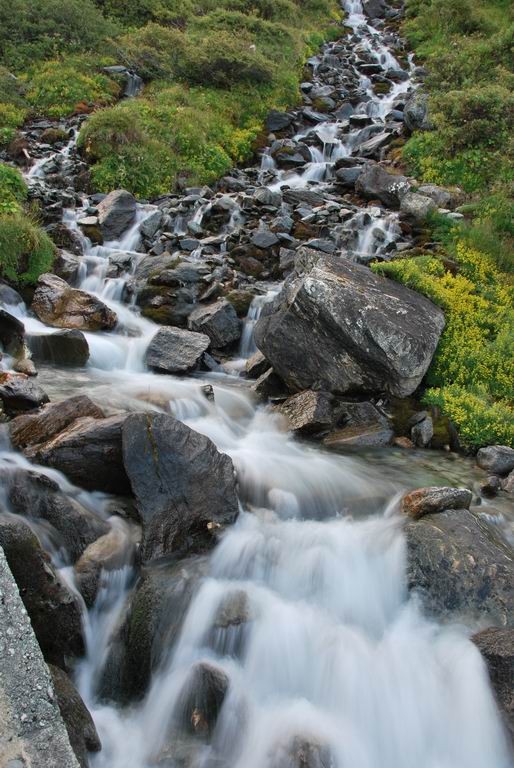 Nad horami kumuly vykvétají do velké výšky a rychle se mění v kumulonimby (vzrostlé bouřkové mraky). Příchod bouřky už signalizuje i stále blížící se hřmění. Za takhle rychle zhoršujícího se počasí se rozhodujeme nepokračovat dál do protějších svahů. Na druhé straně přehrady nacházíme krátký betonový tunel končící zamčenými dveřmi. I tak je to dostateně prostorný úkryt před přicházející bouřkou. Roztahujeme karimatky a vleže pozorujeme blesky a proudy vody padající z nebe. Připravujeme se i na variantu nouzového přespání tady na betonu. Nakonec se ale živly umoudřují, bouřka odchází do údolí a my vyrážíme do svahu k sedlu Col de Torrent (2919m).